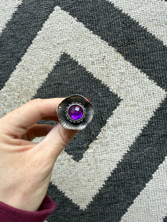 Dark Purple Flower Ring (7-8.5)