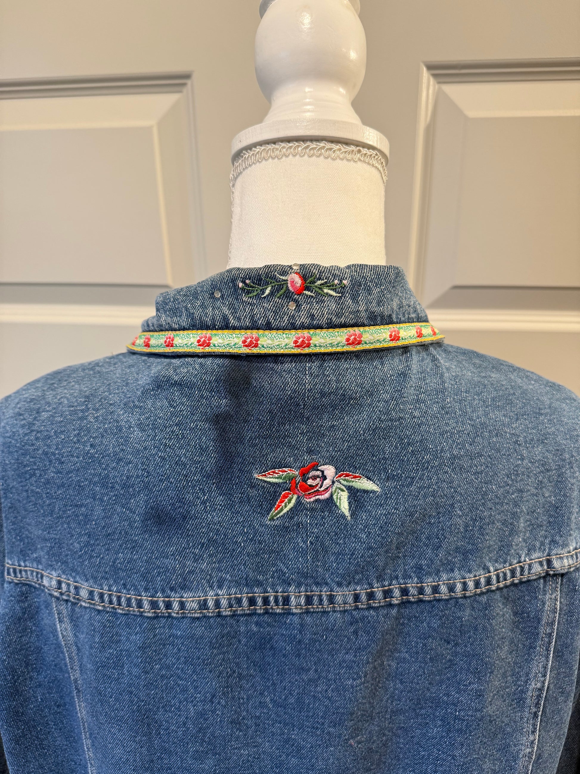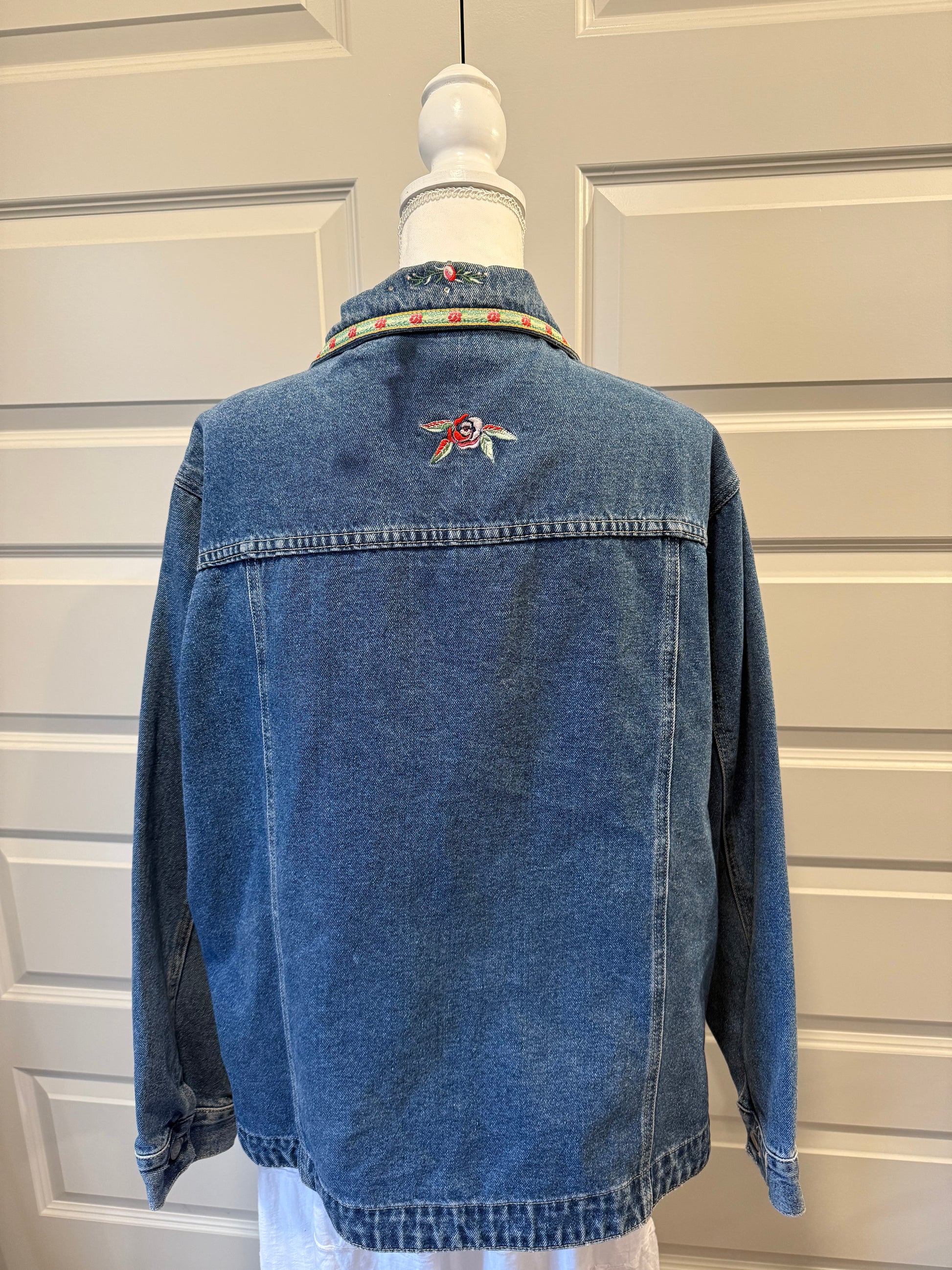 Bill Blass floral embroidered jean jacket. Women’s XXL