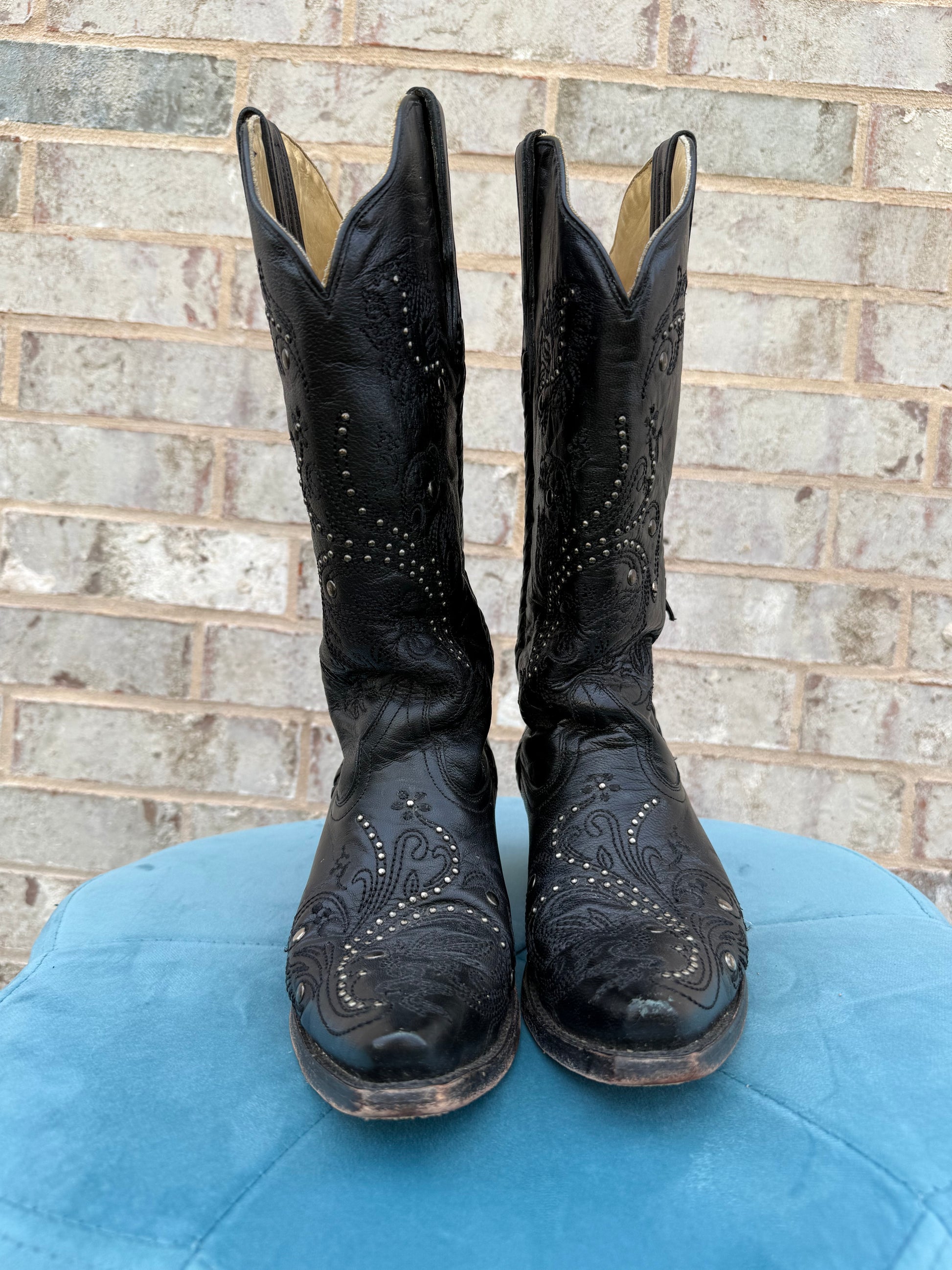 Vintage black corral cowboy boots with studs, size women’s 6.5