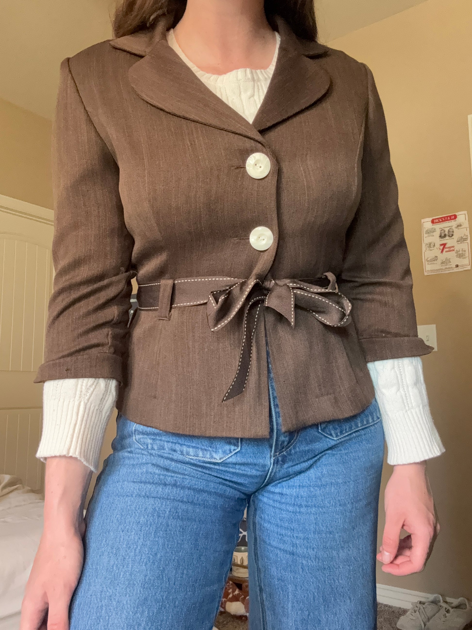 Cutest brown blazer with buttons and tie detail. Women's M.