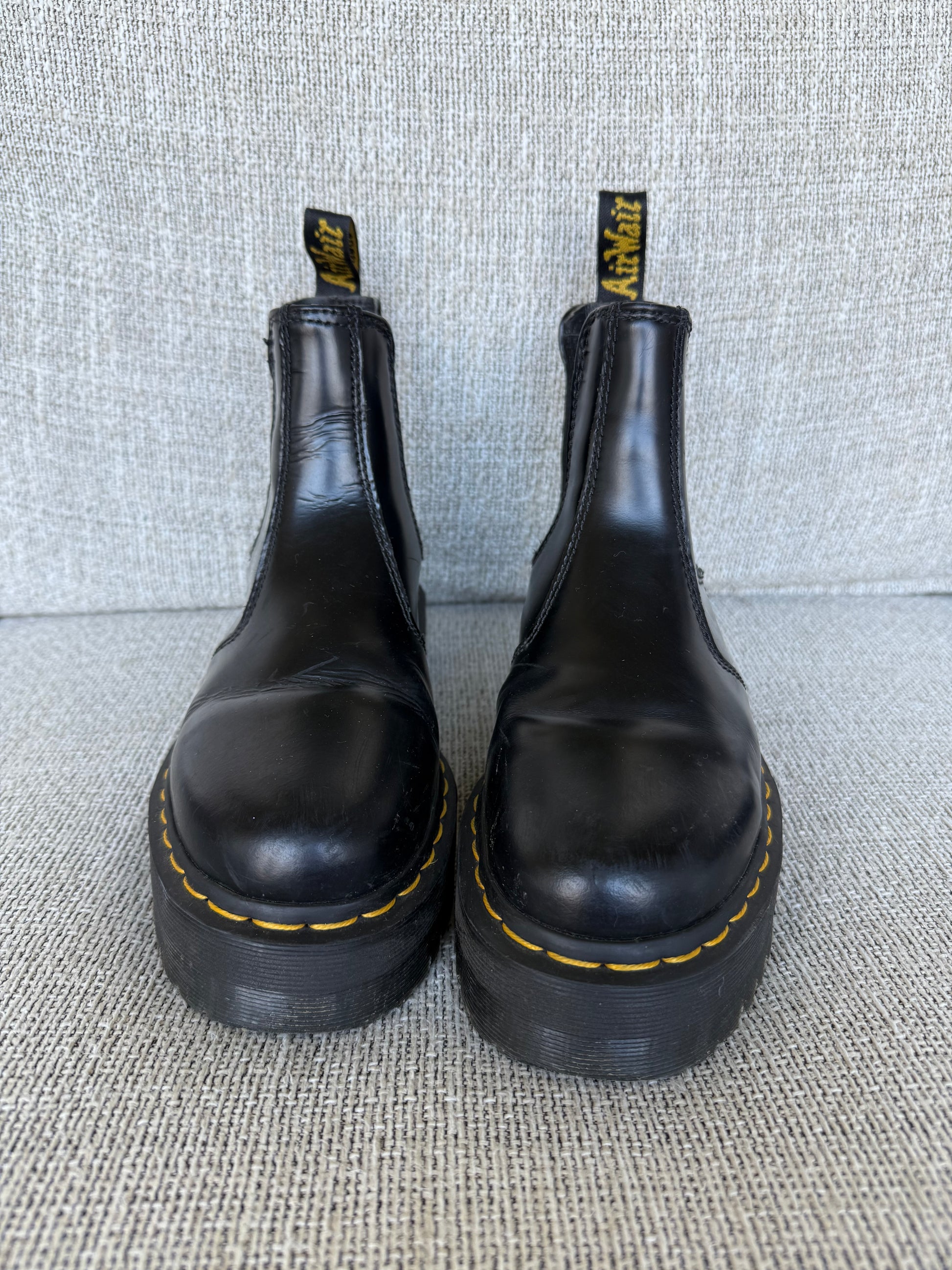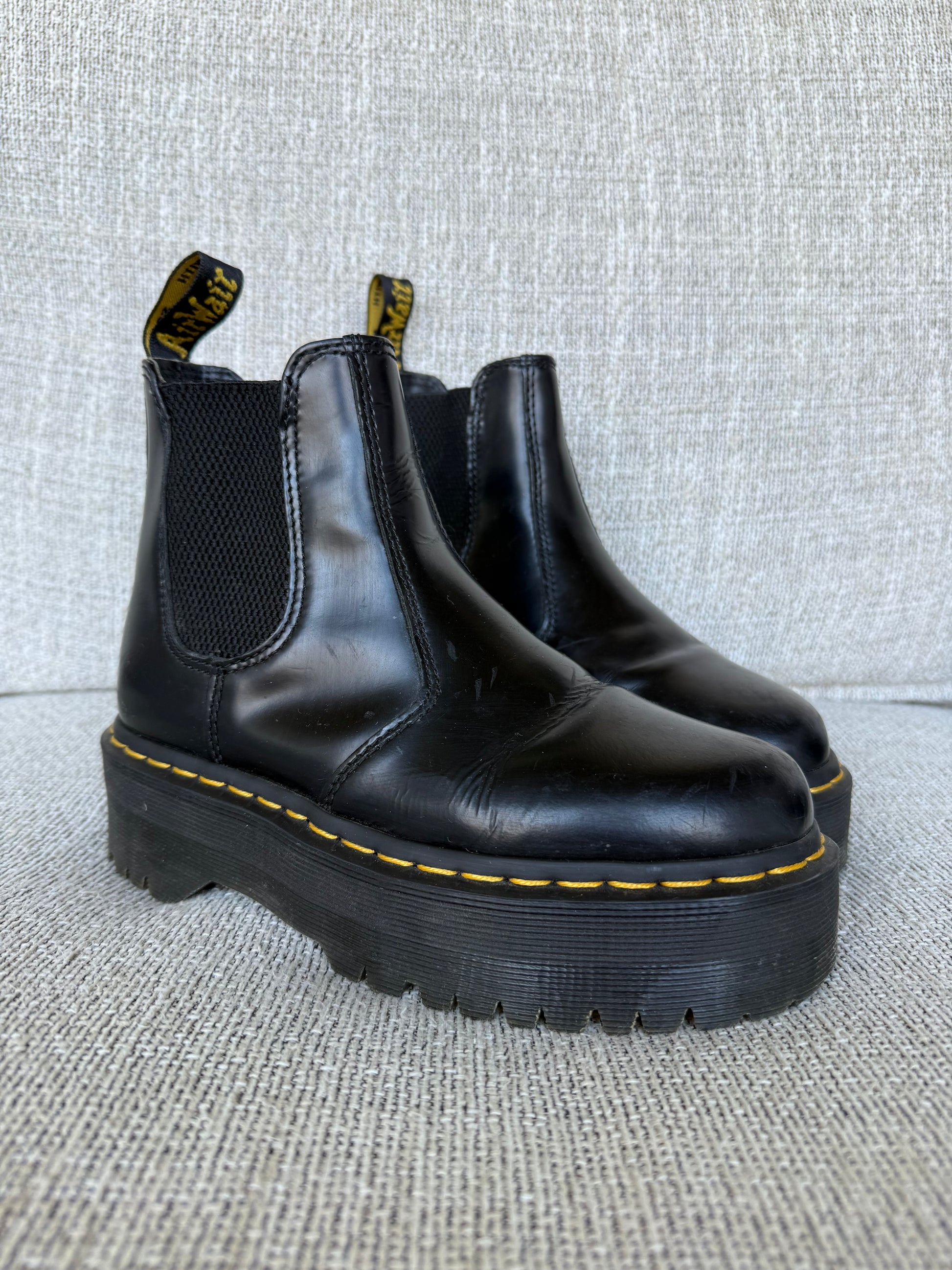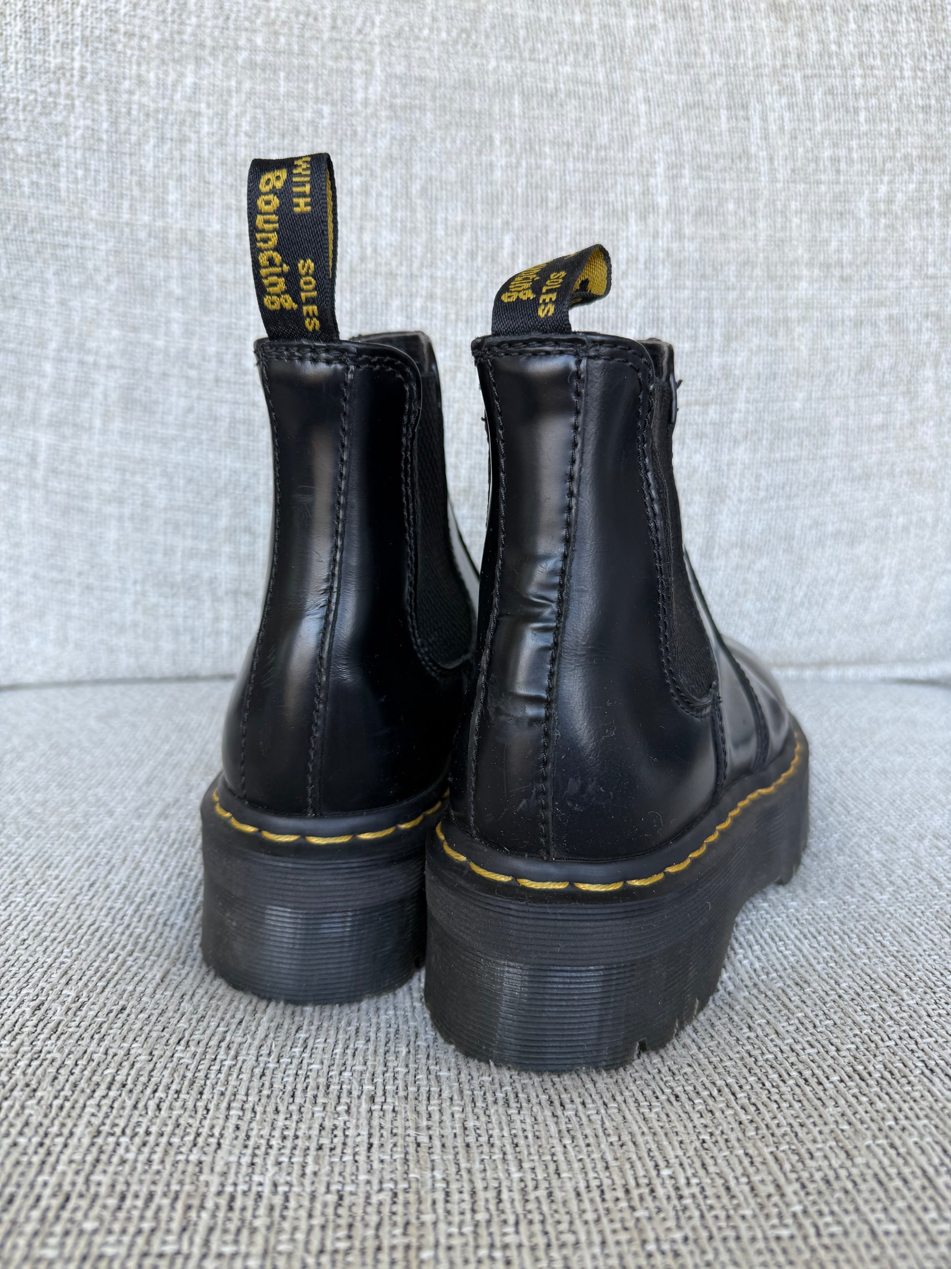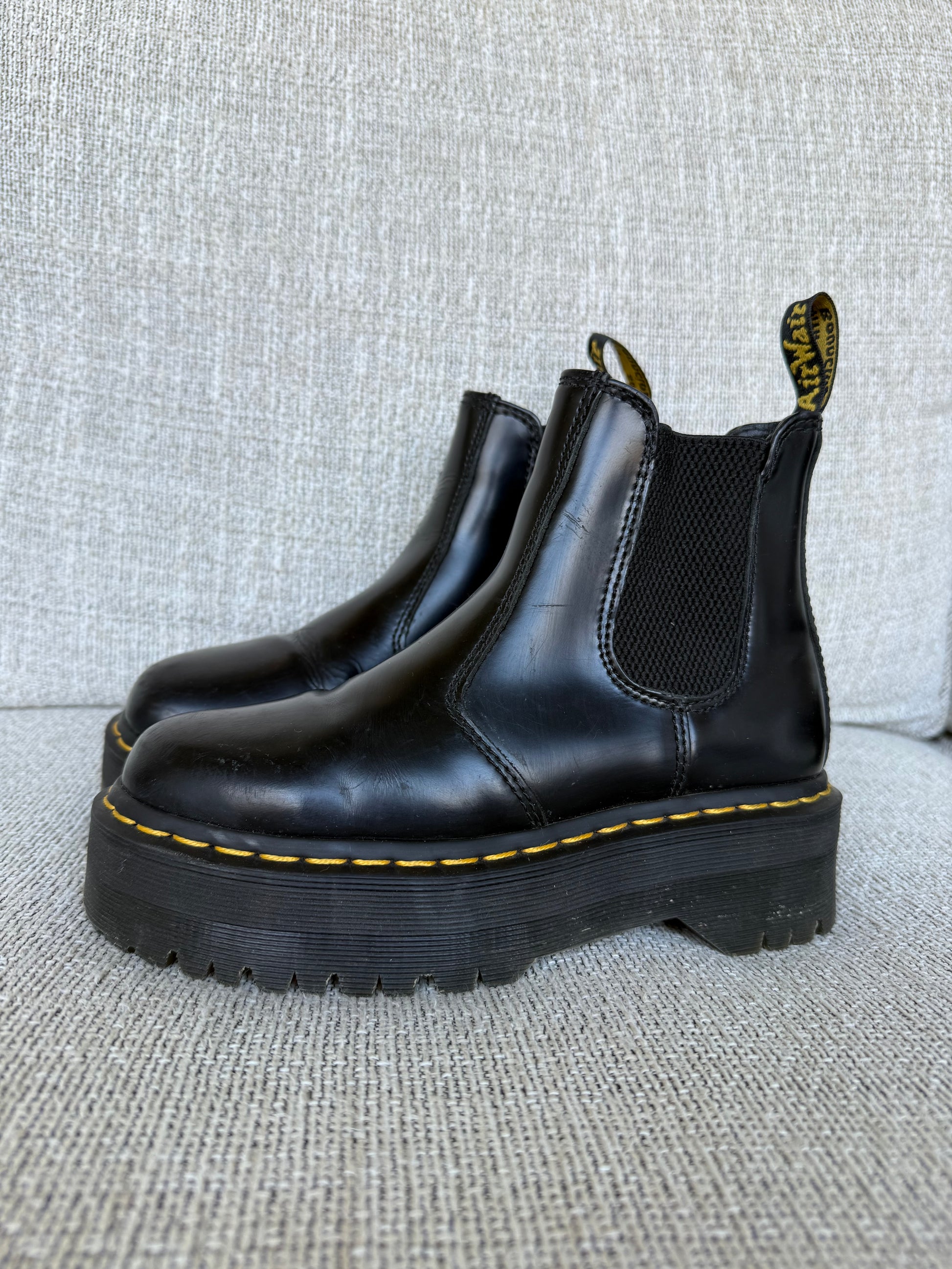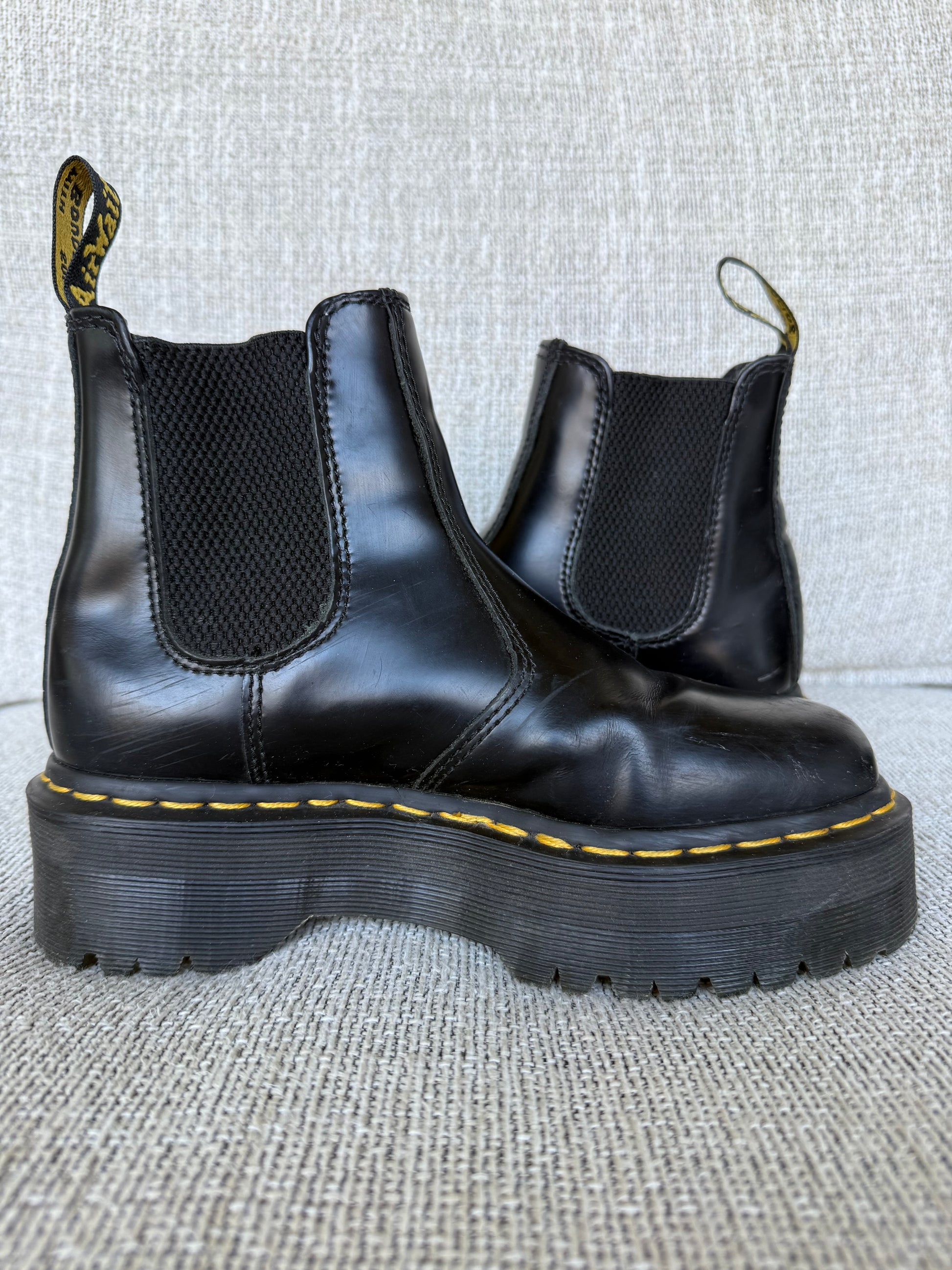 Black Chelsea quad platform boots. Great to just slip on and go!