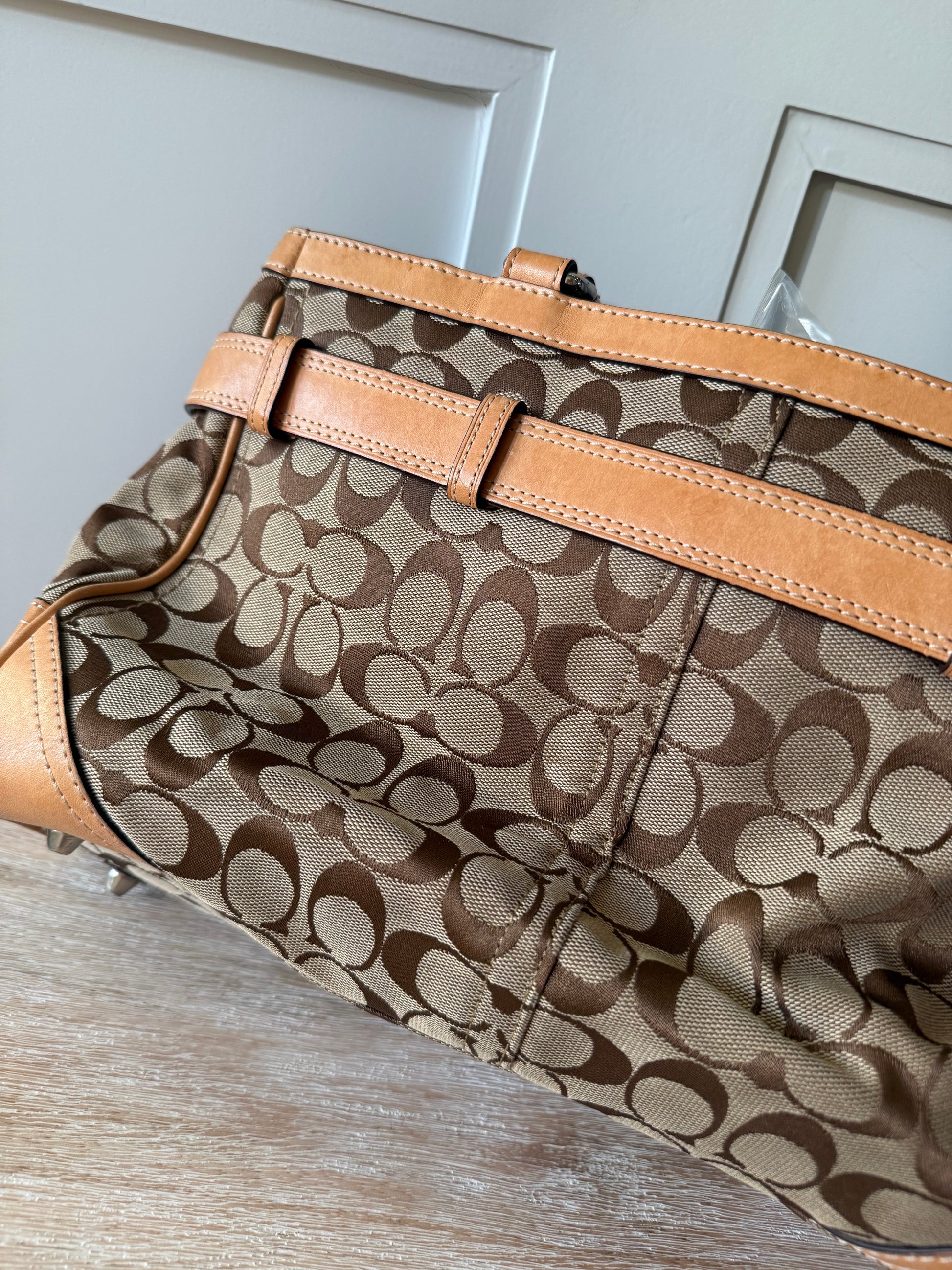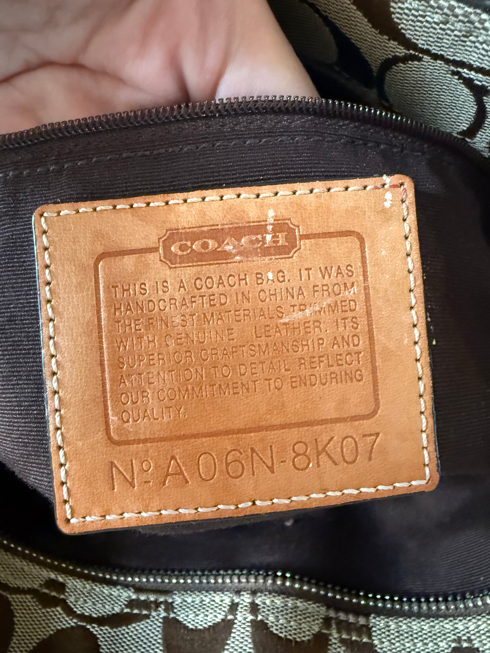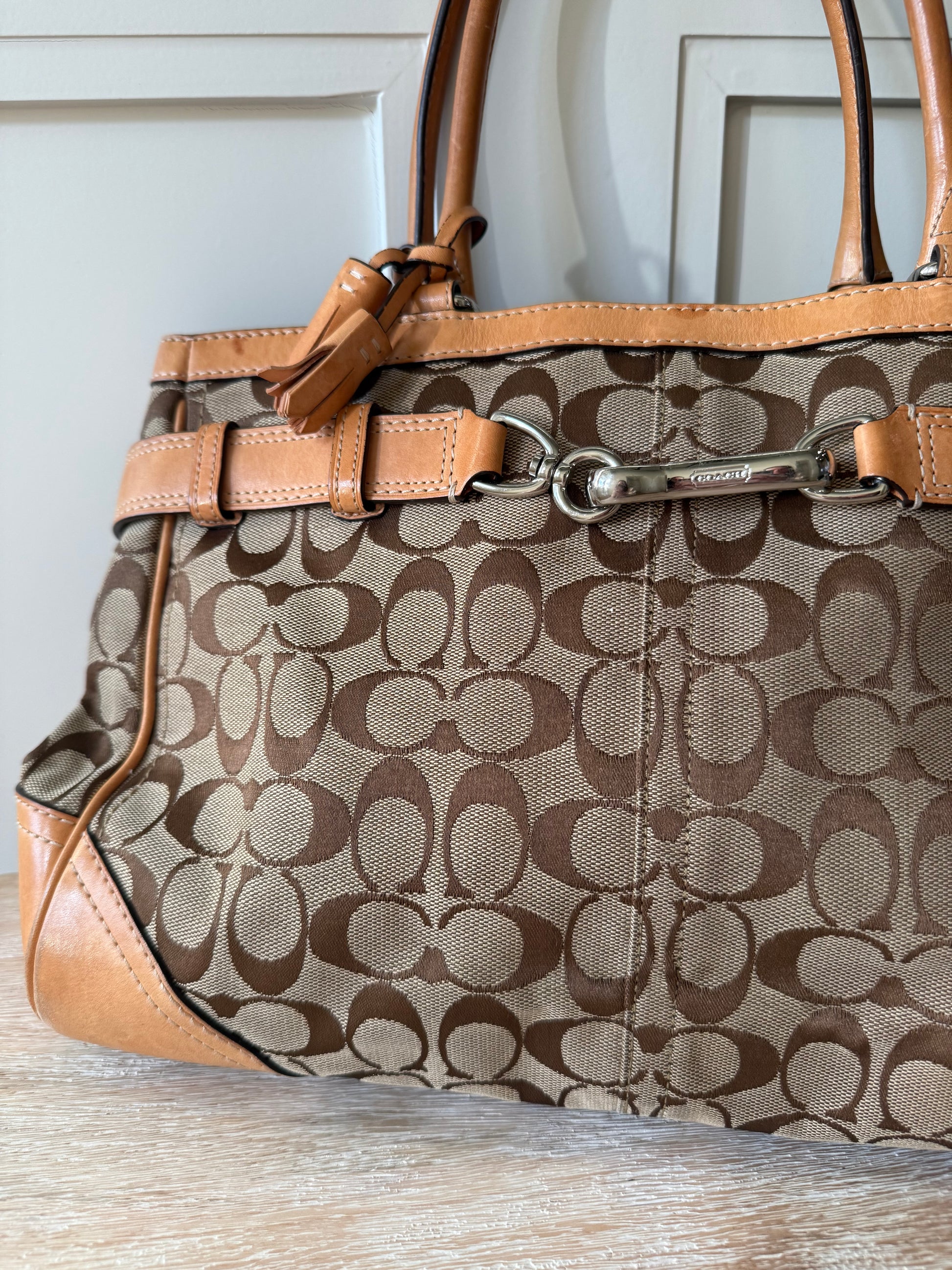 Vintage Y2K Coach Hamptons bag. Very nice brown leather and canvas shoulder bag with metal details.