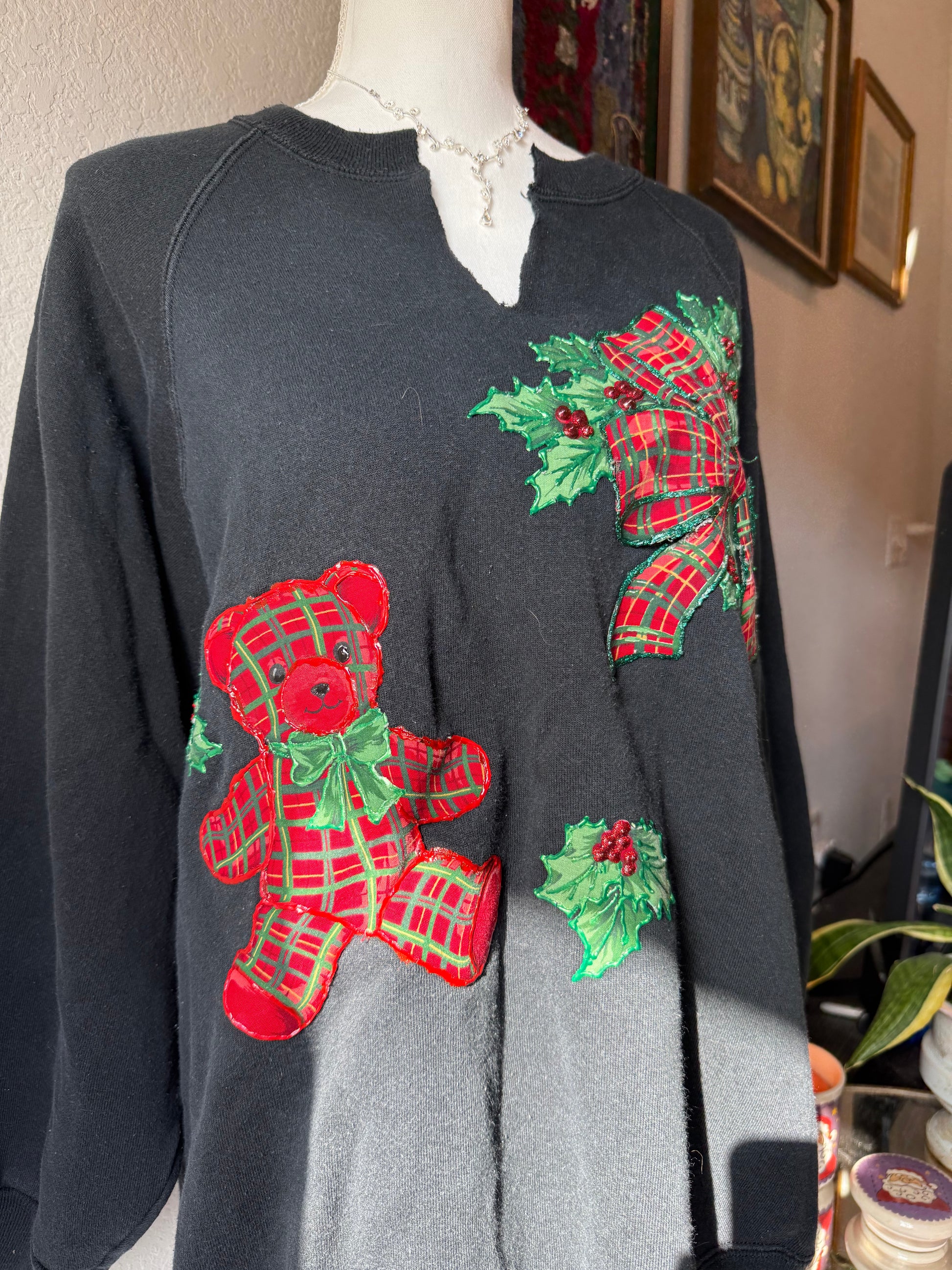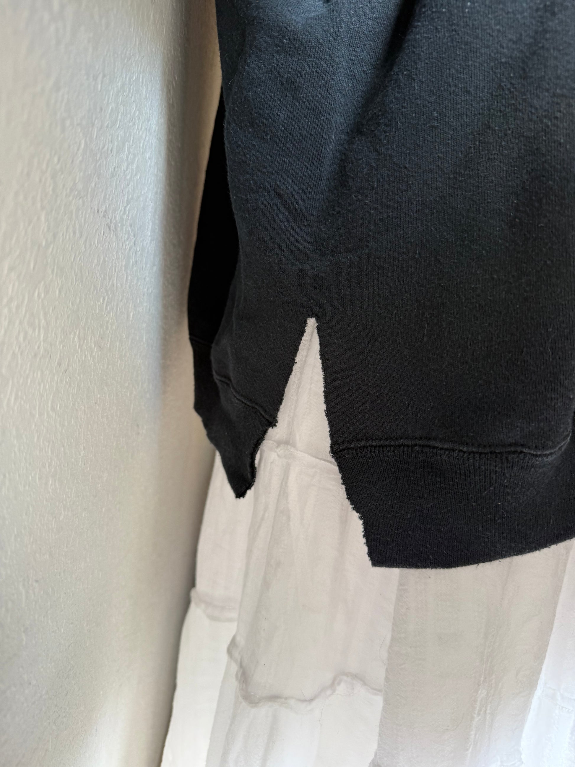 Vintage sweater with the neck and sides cut a bit as a DIY.