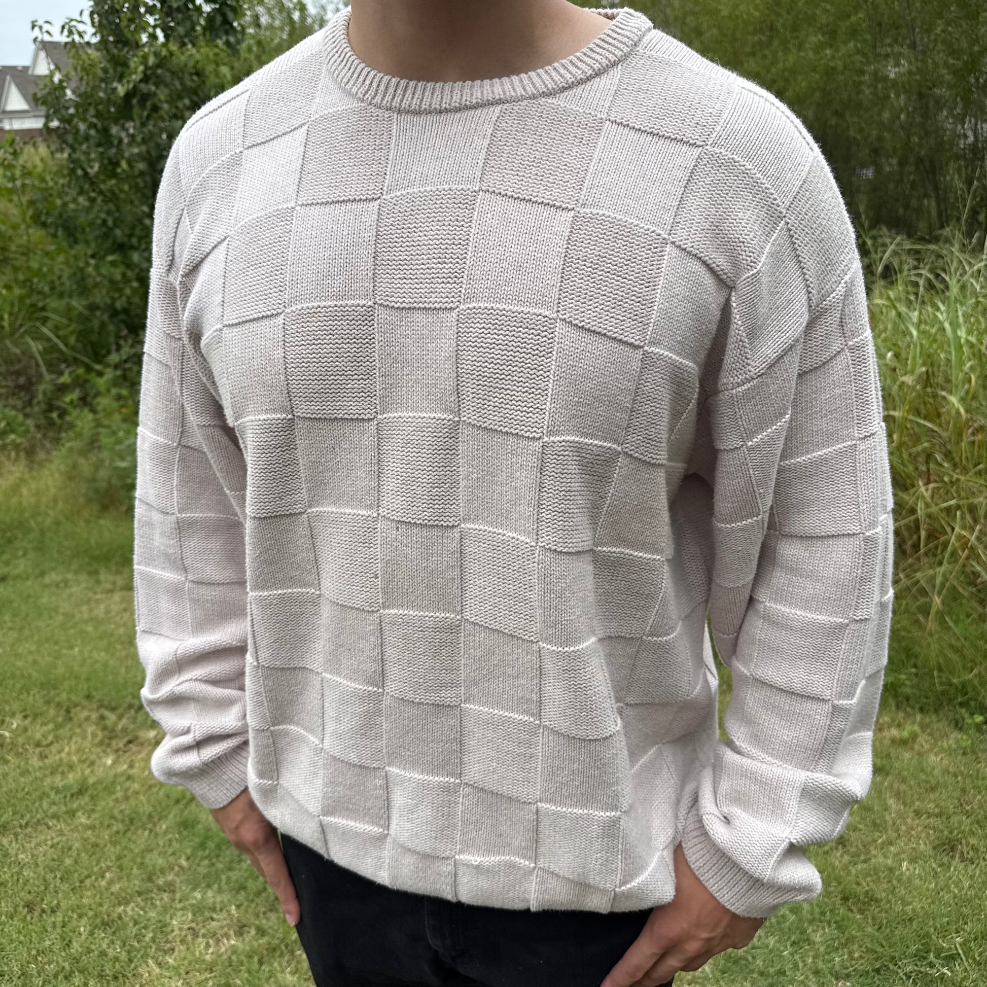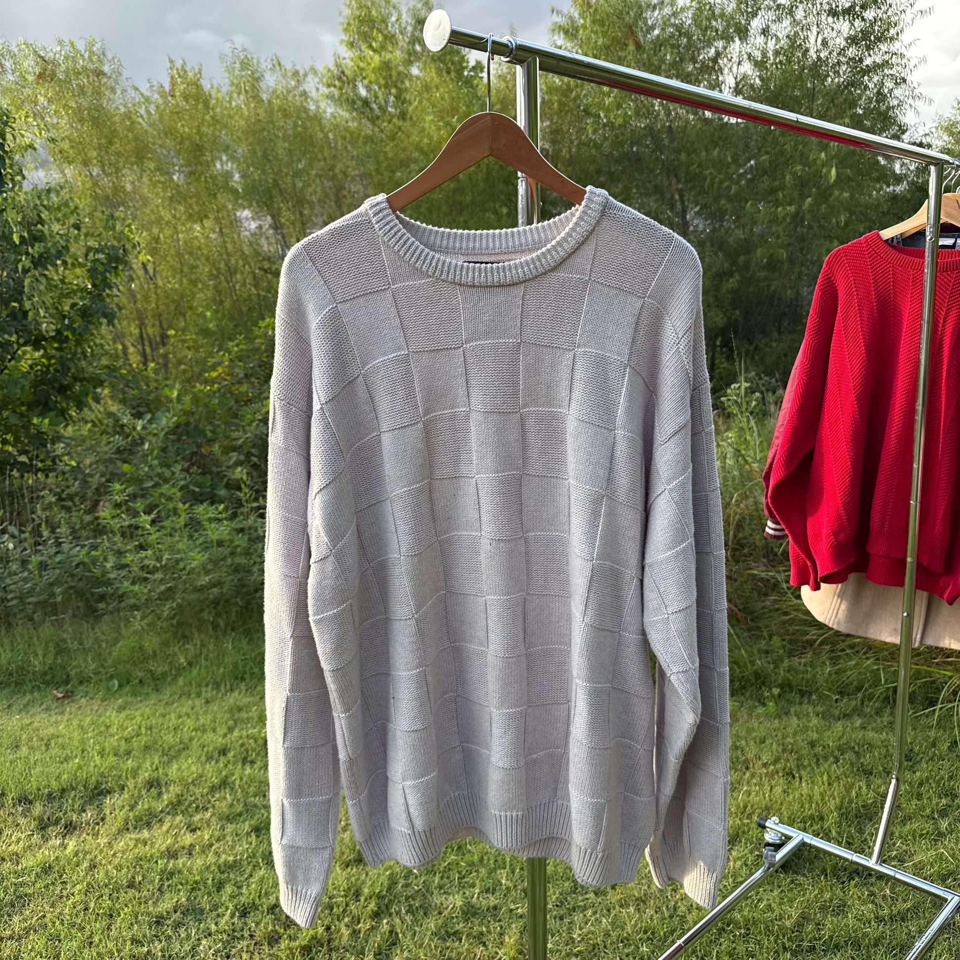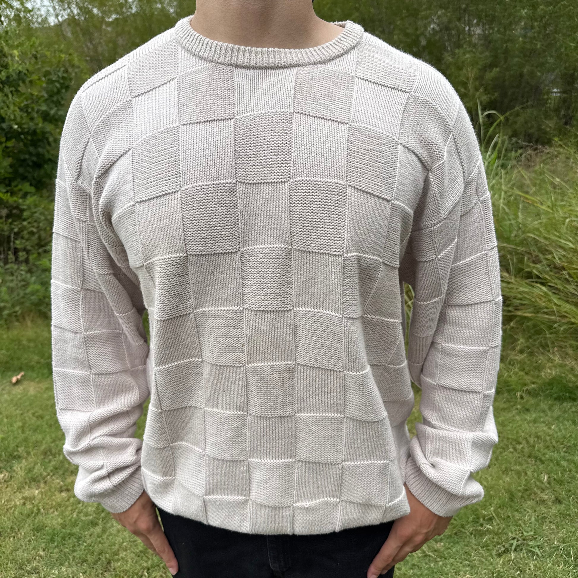 Vintage cream sweater with a checkered knit pattern. Very high quality fall staple.