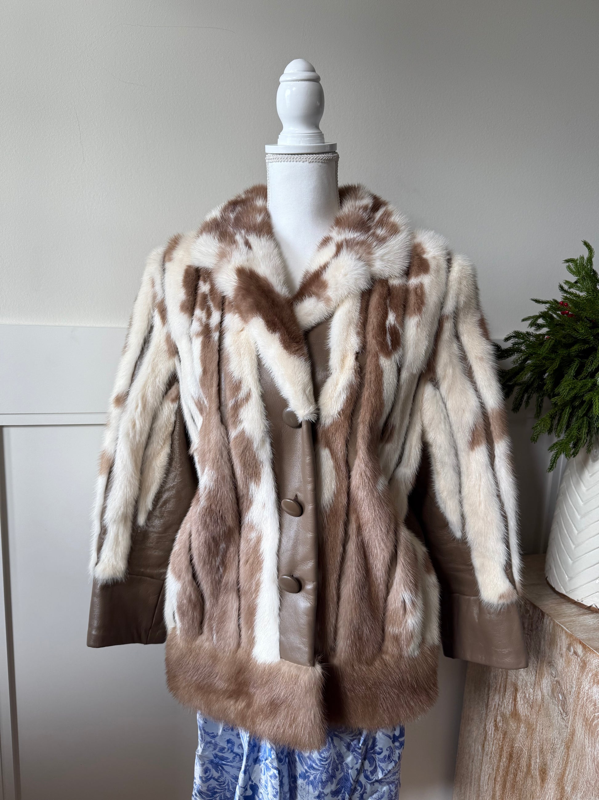 Genuine mink fur coat in excellent condition. Leather cuffs and under arms. This is an amazing vintage fur coat that will last for decades.