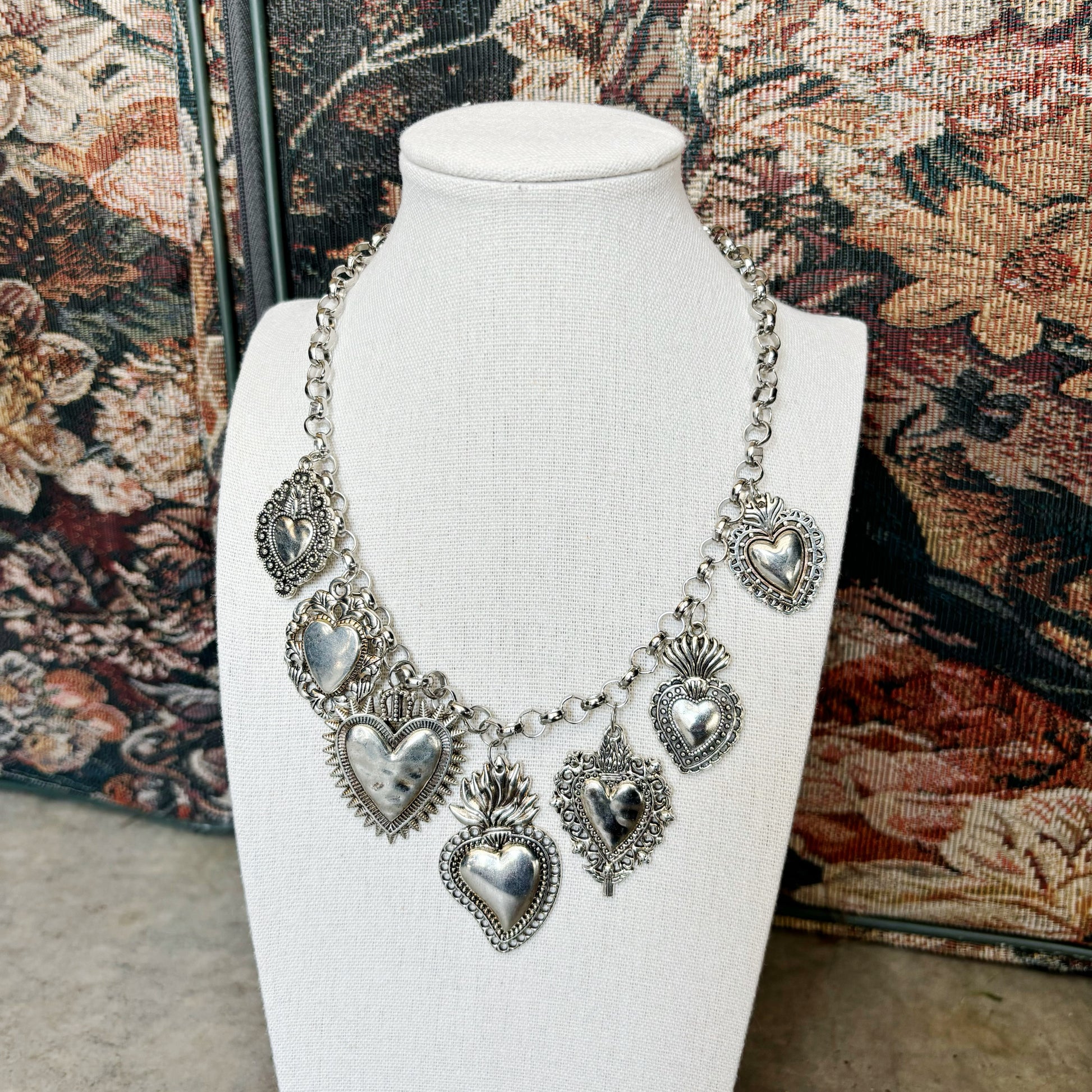 Gorgeous silver necklace with heart pendant charms. Such a lovely and unique necklace!
