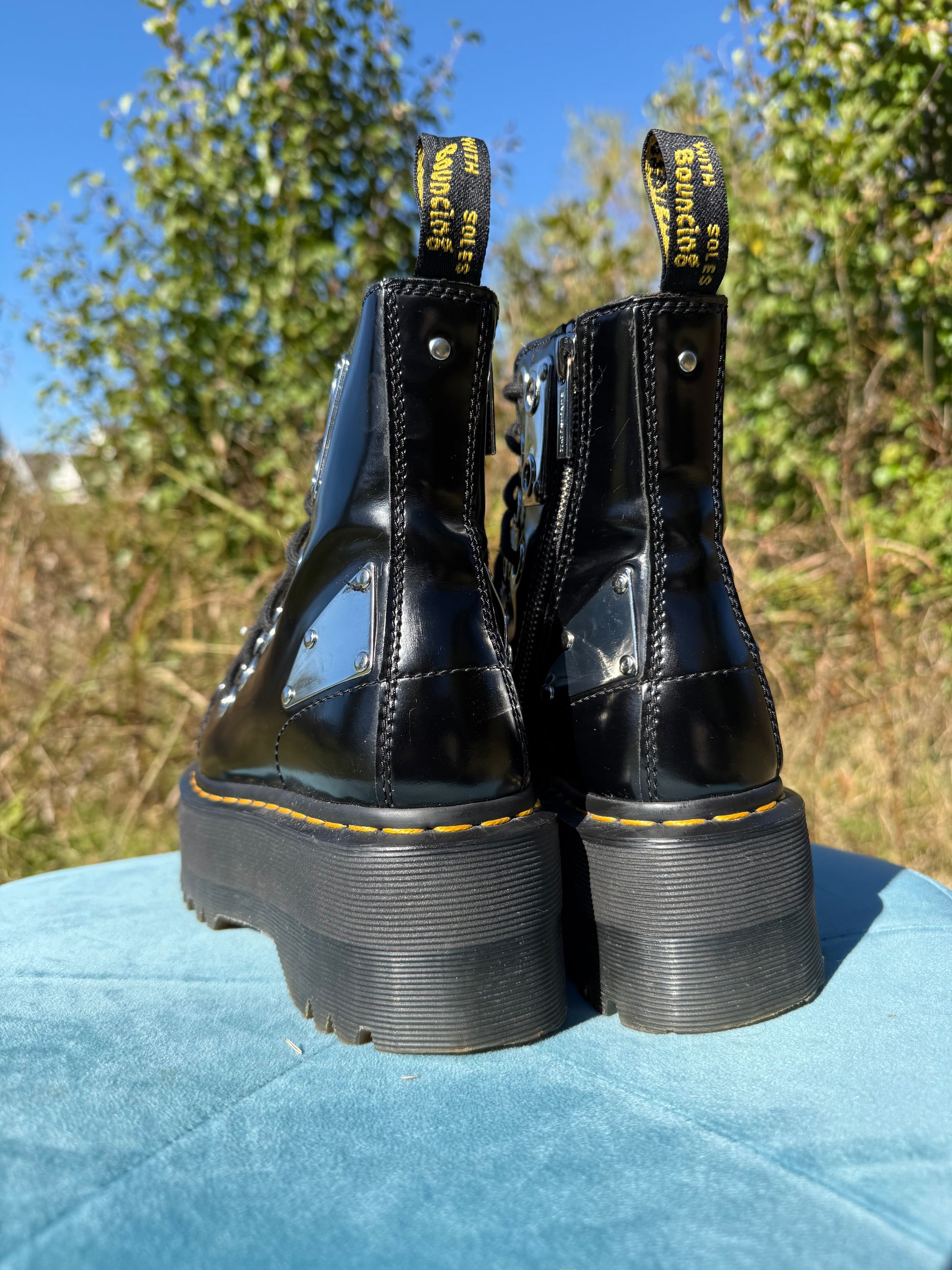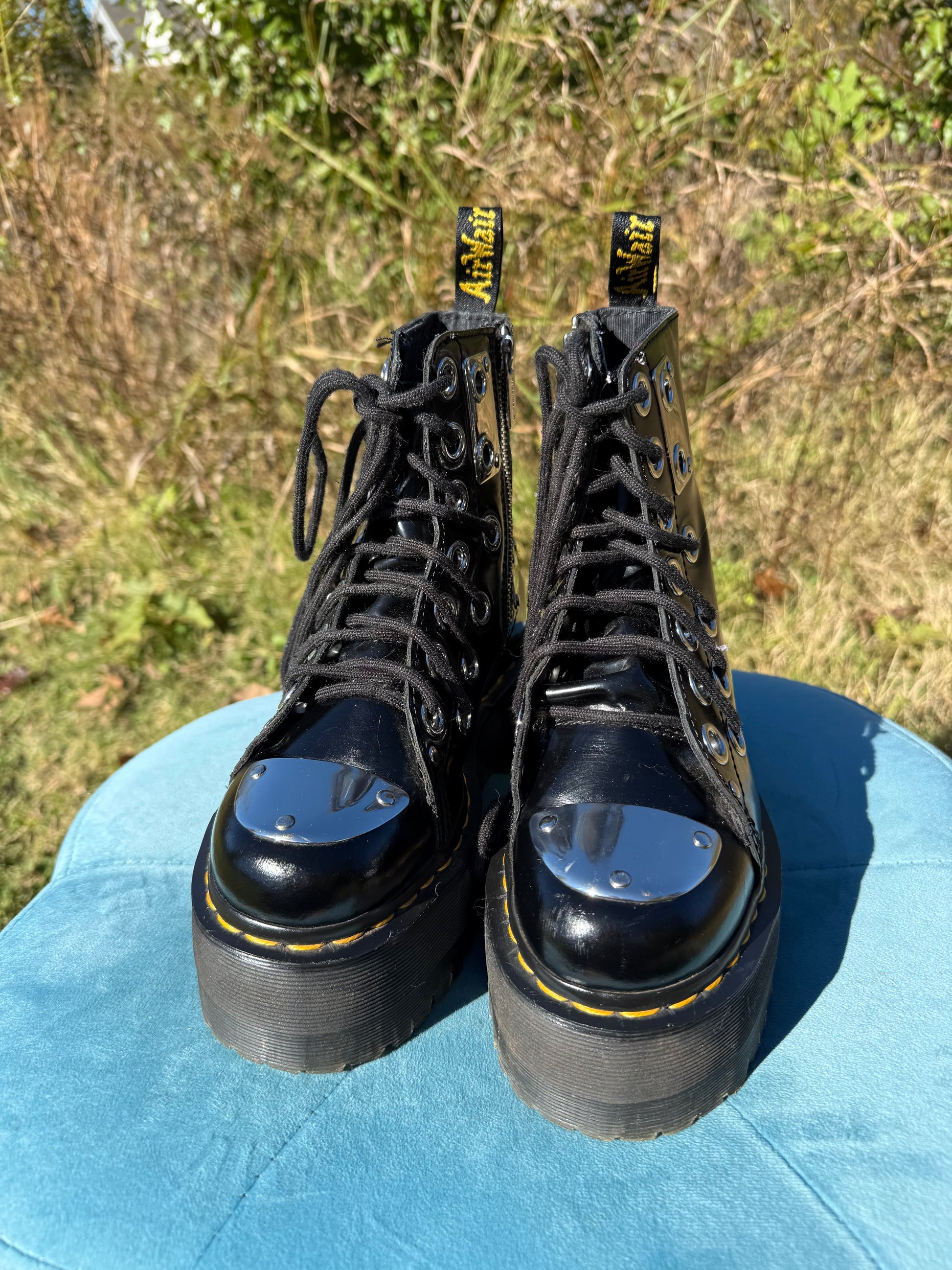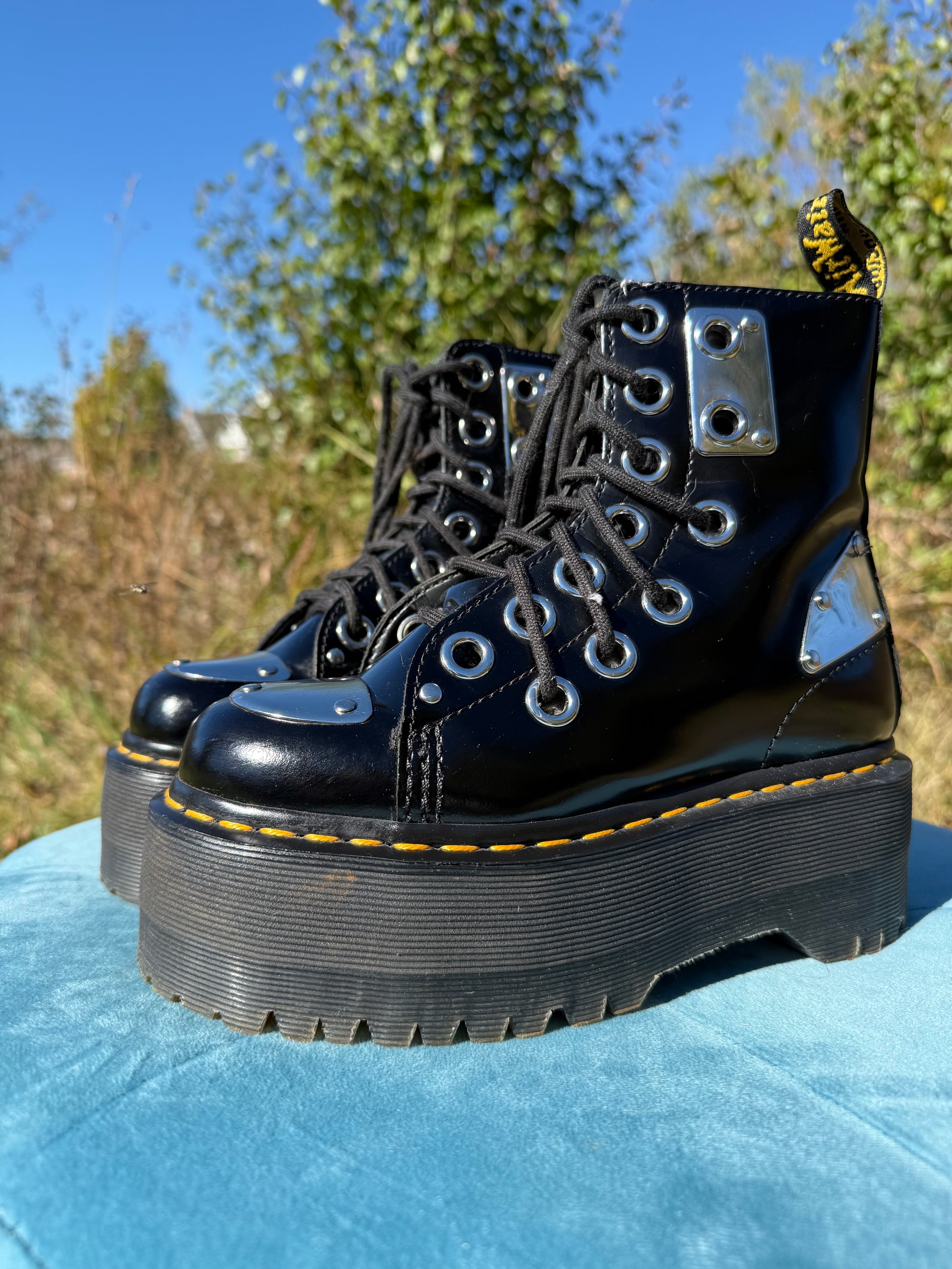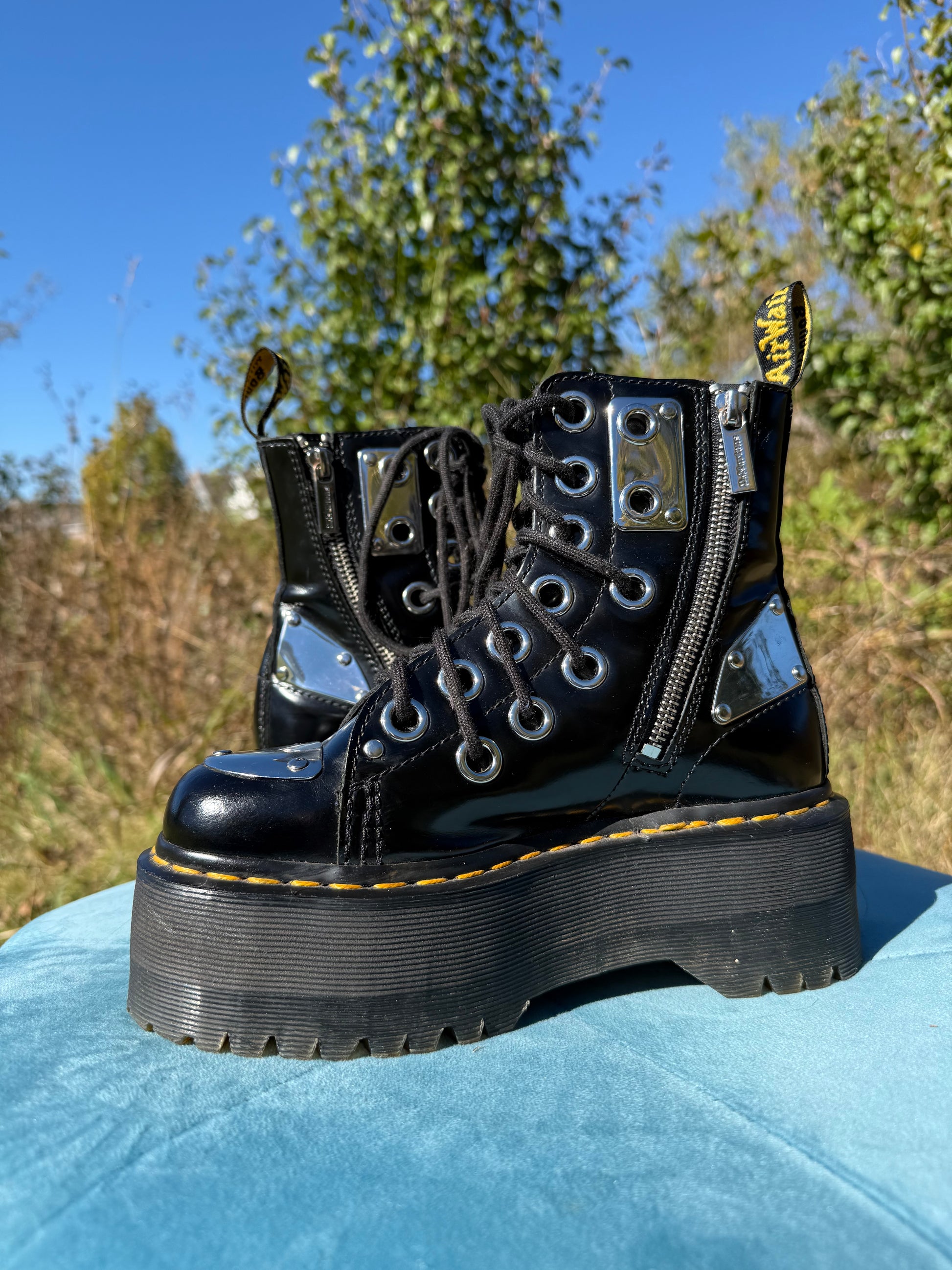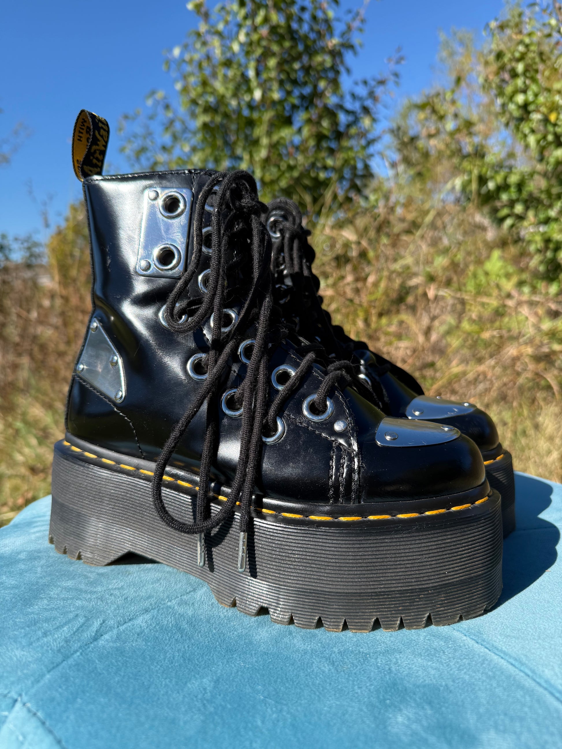 One of the coolest grail pairs ever! These are so rare, and for good reason- who would ever want to give them up? They feature a max platform, double layers of grommets, and metal plate details. Such a unique pair of boots!