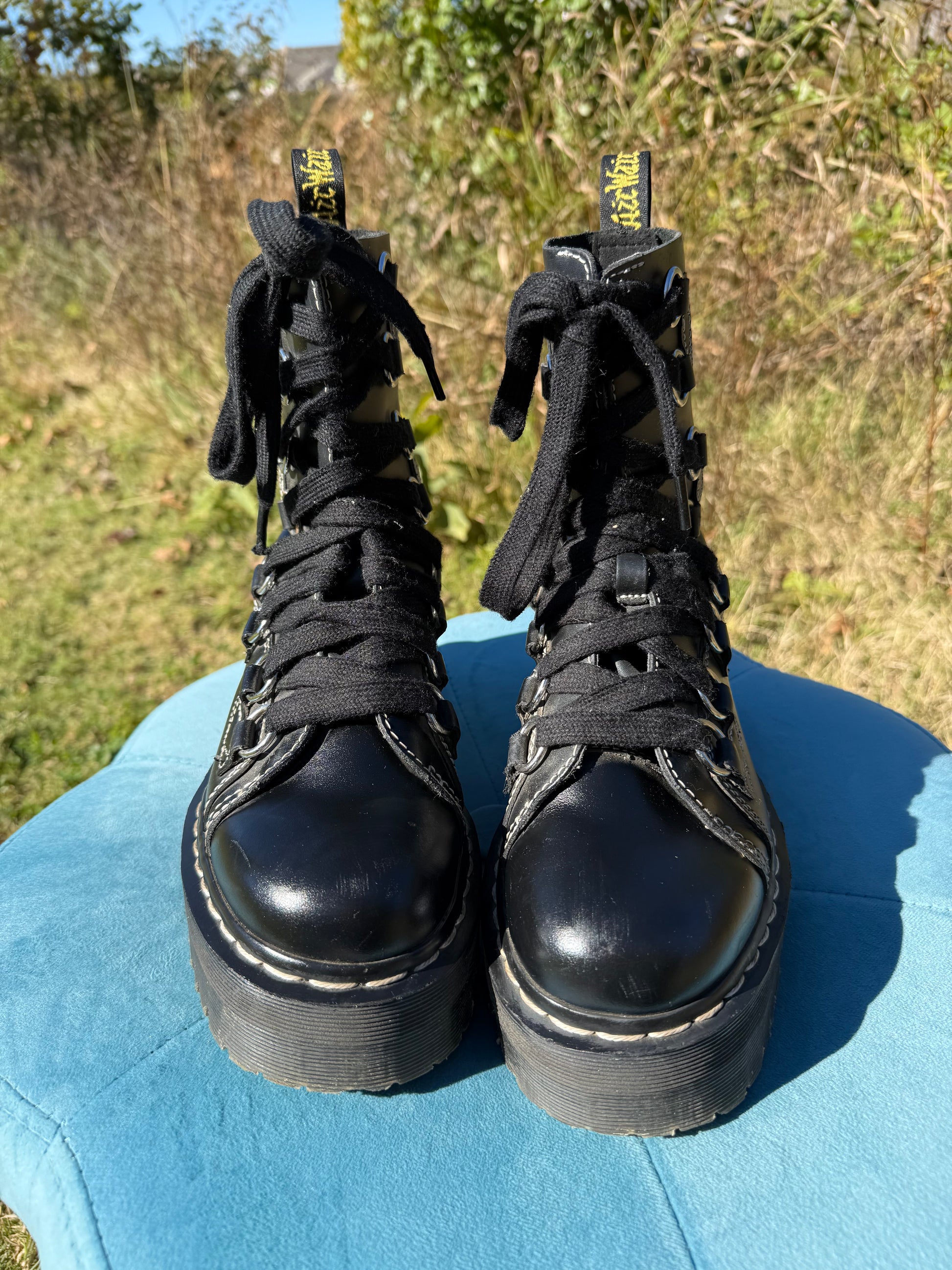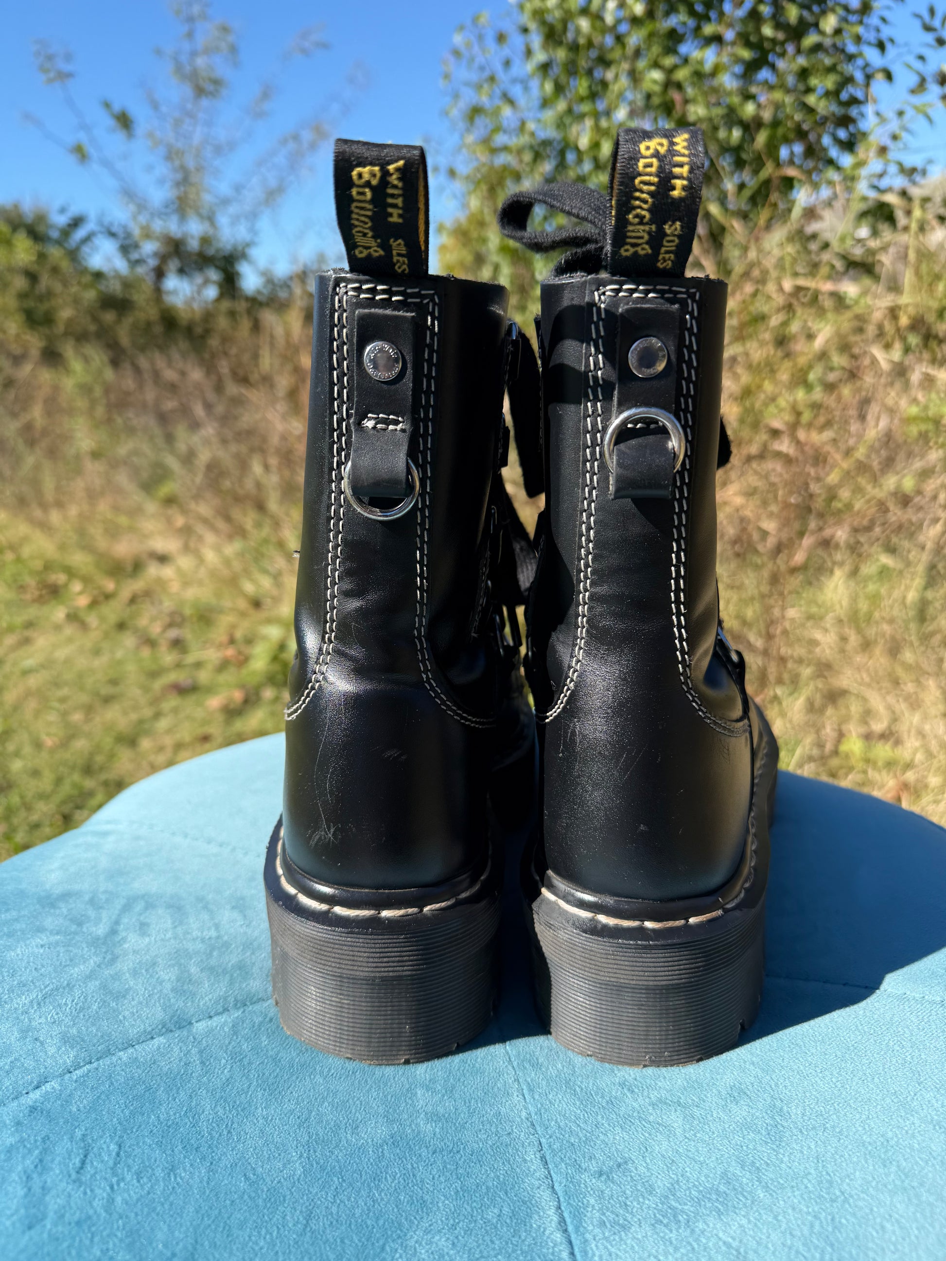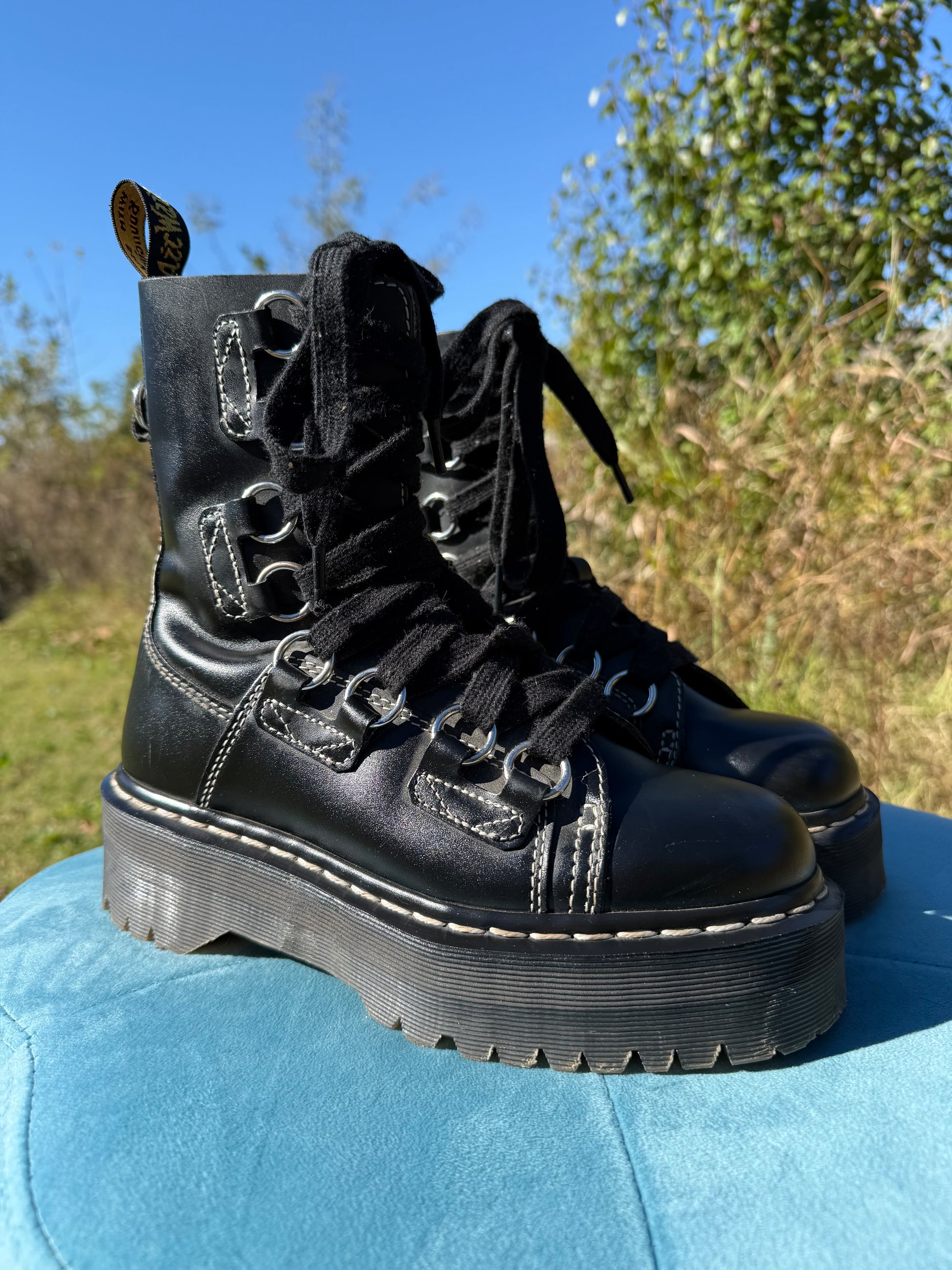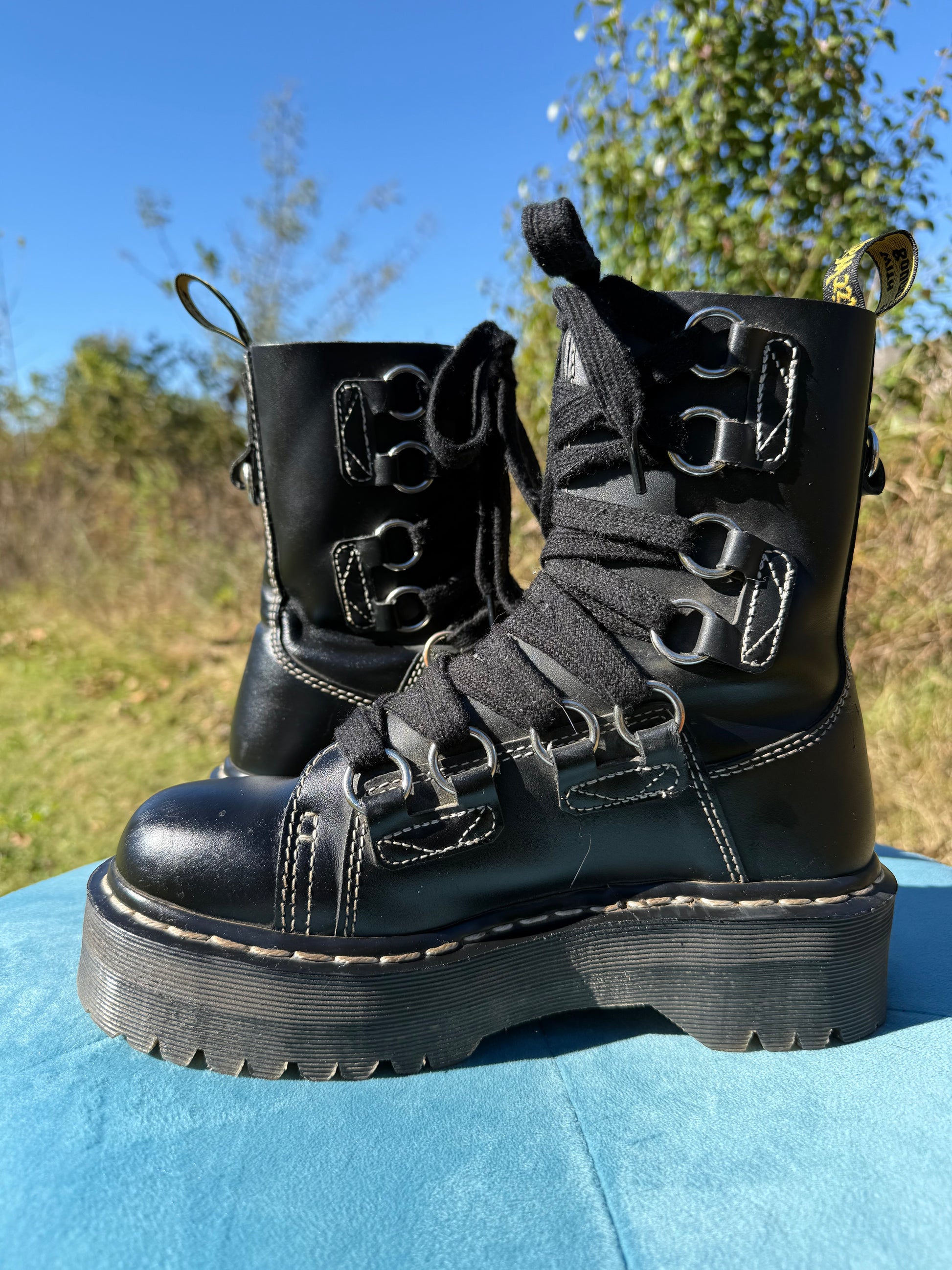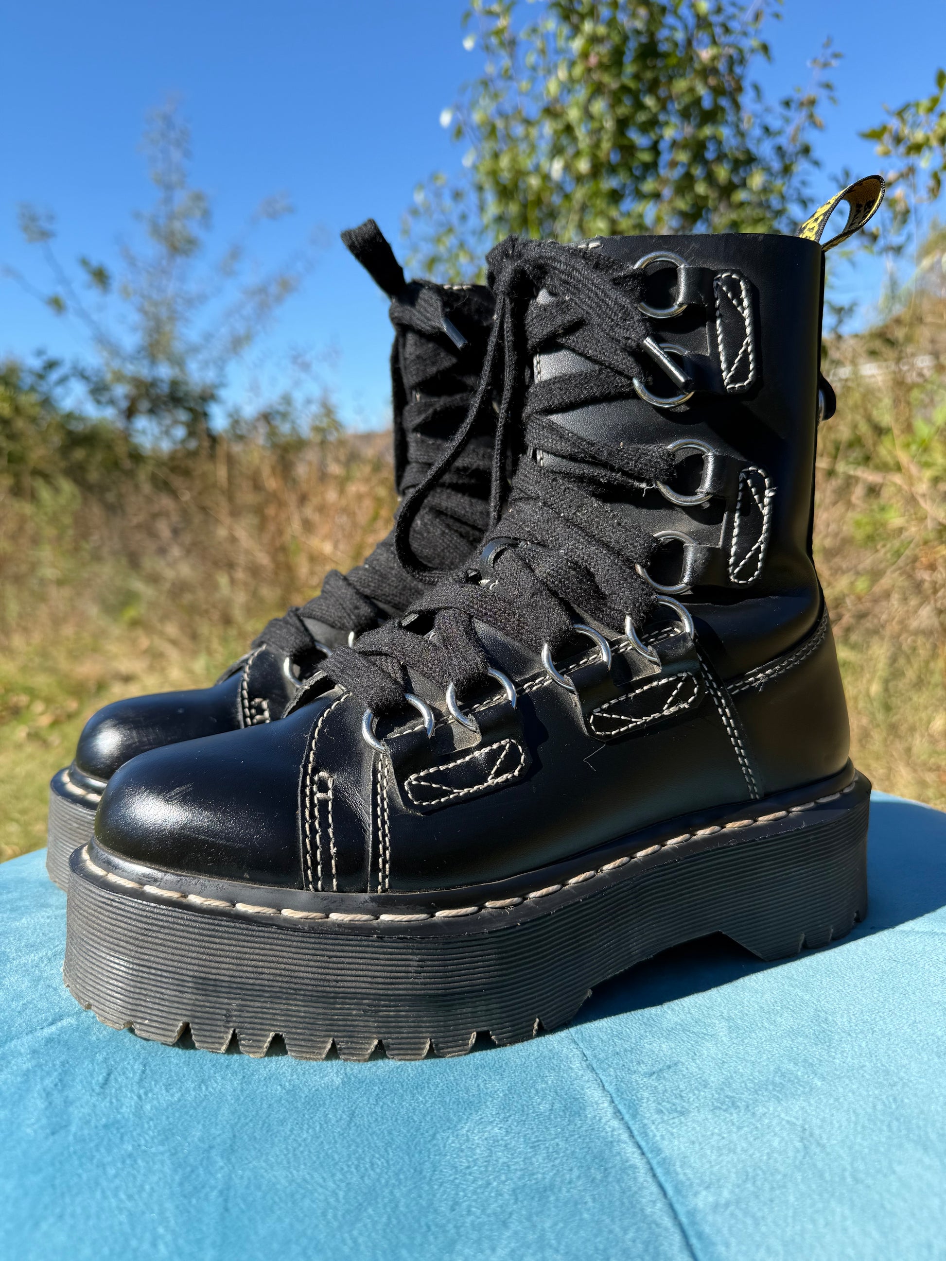 Unique Jadon XL platform boots with thick laces, white stitching, and metal detailing. Such a cool pair if you're looking for a twist on the standard Jadon platforms!