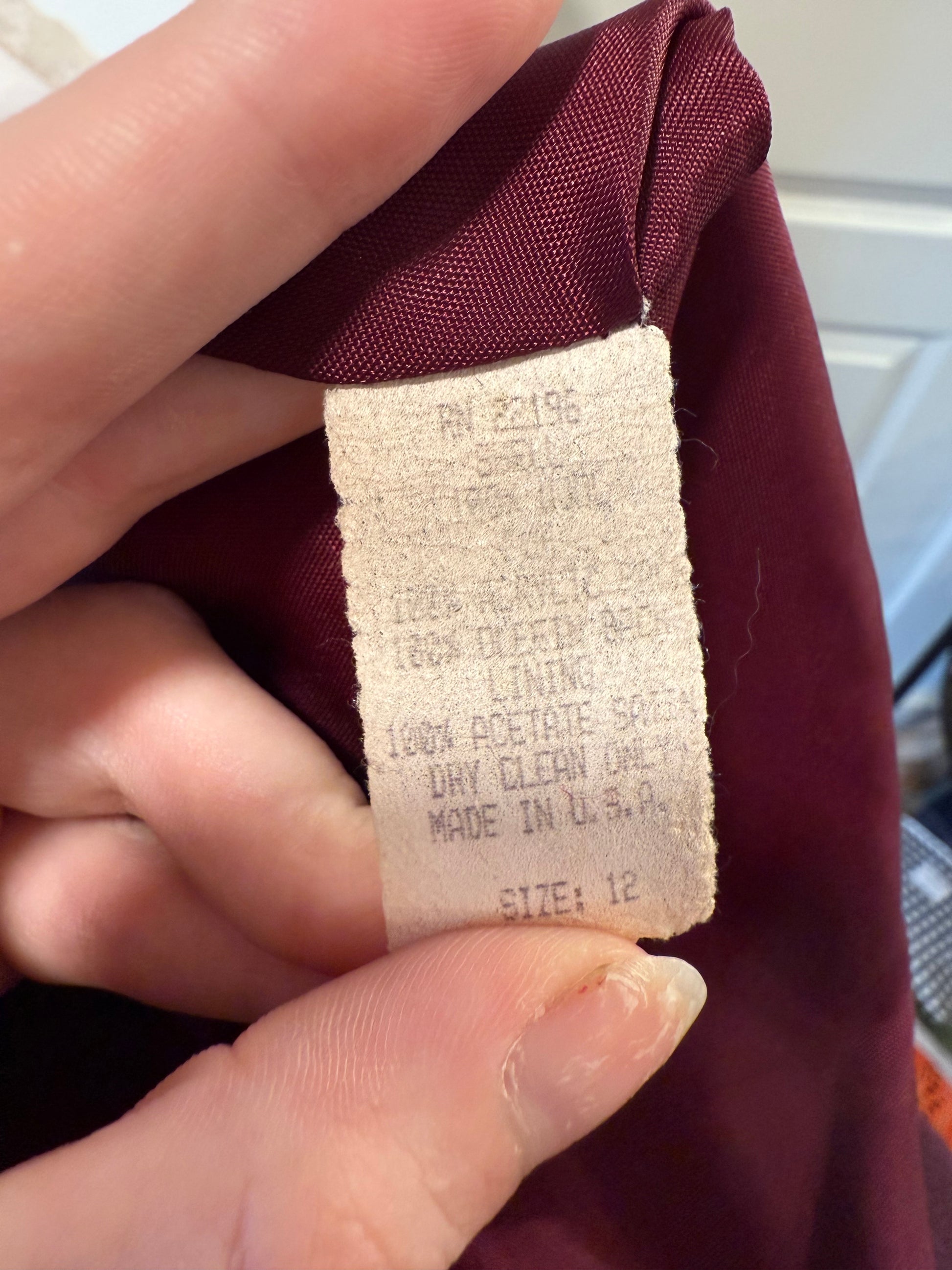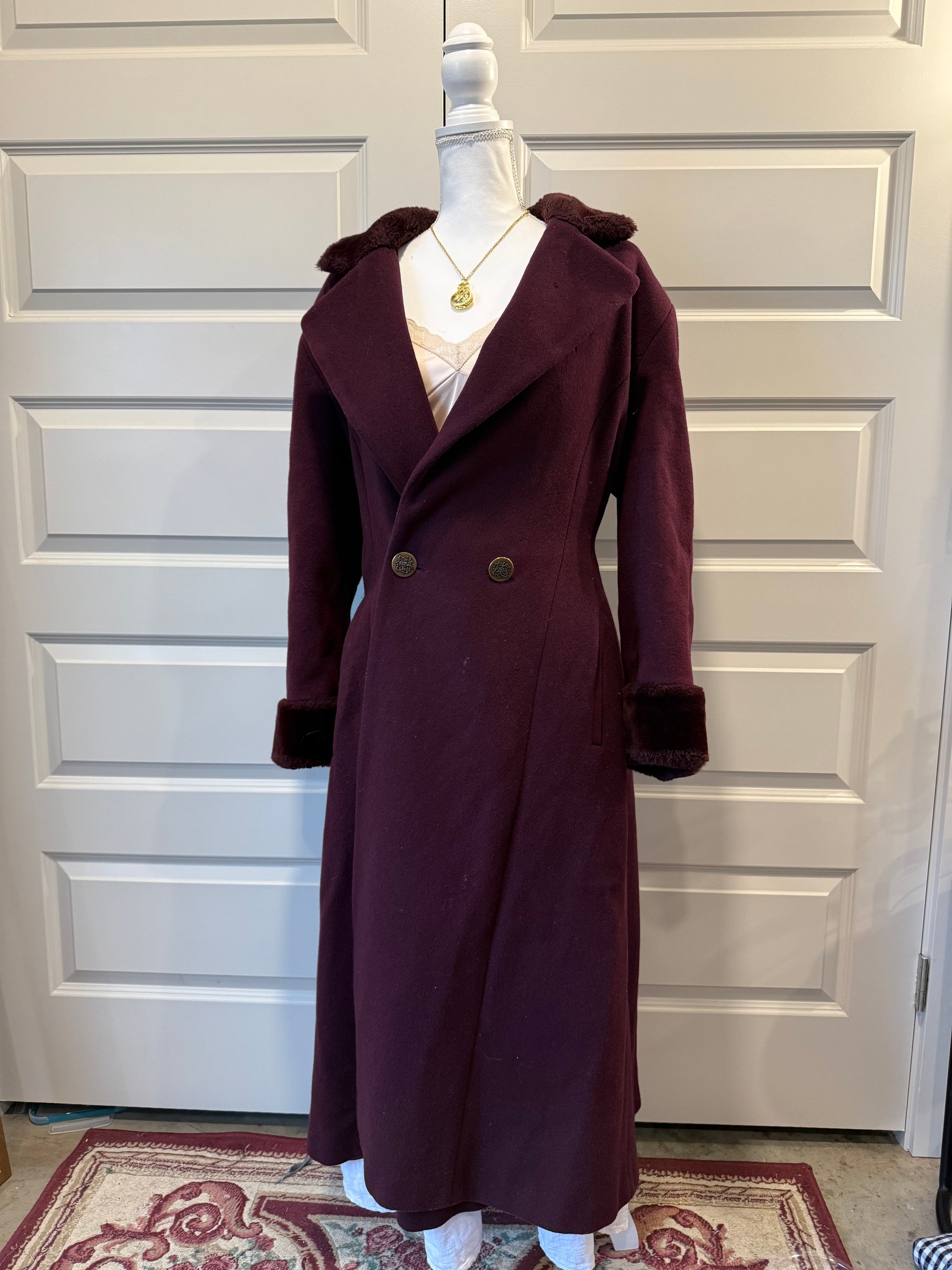 Burgundy wool Leslie Fay jacket with faux fur trim. Women’s L