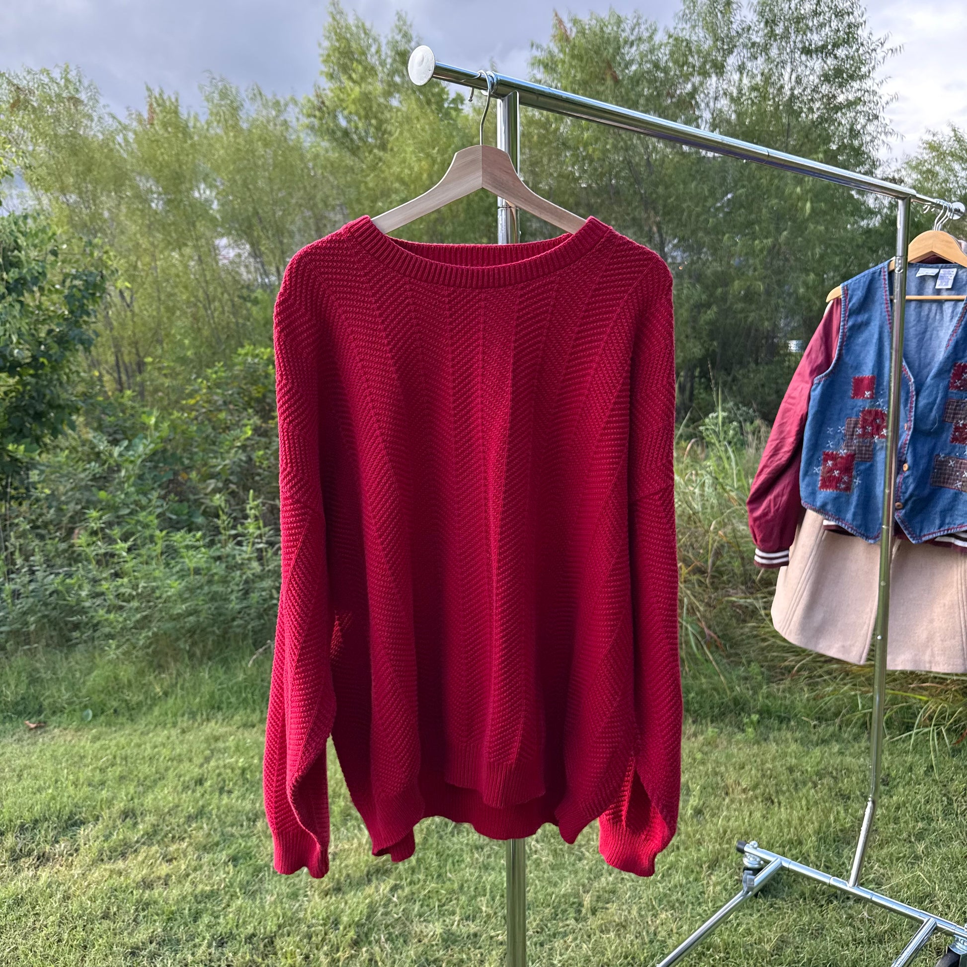 Vintage red knit sweater. Perfect pop of color for a neutral fall palette.