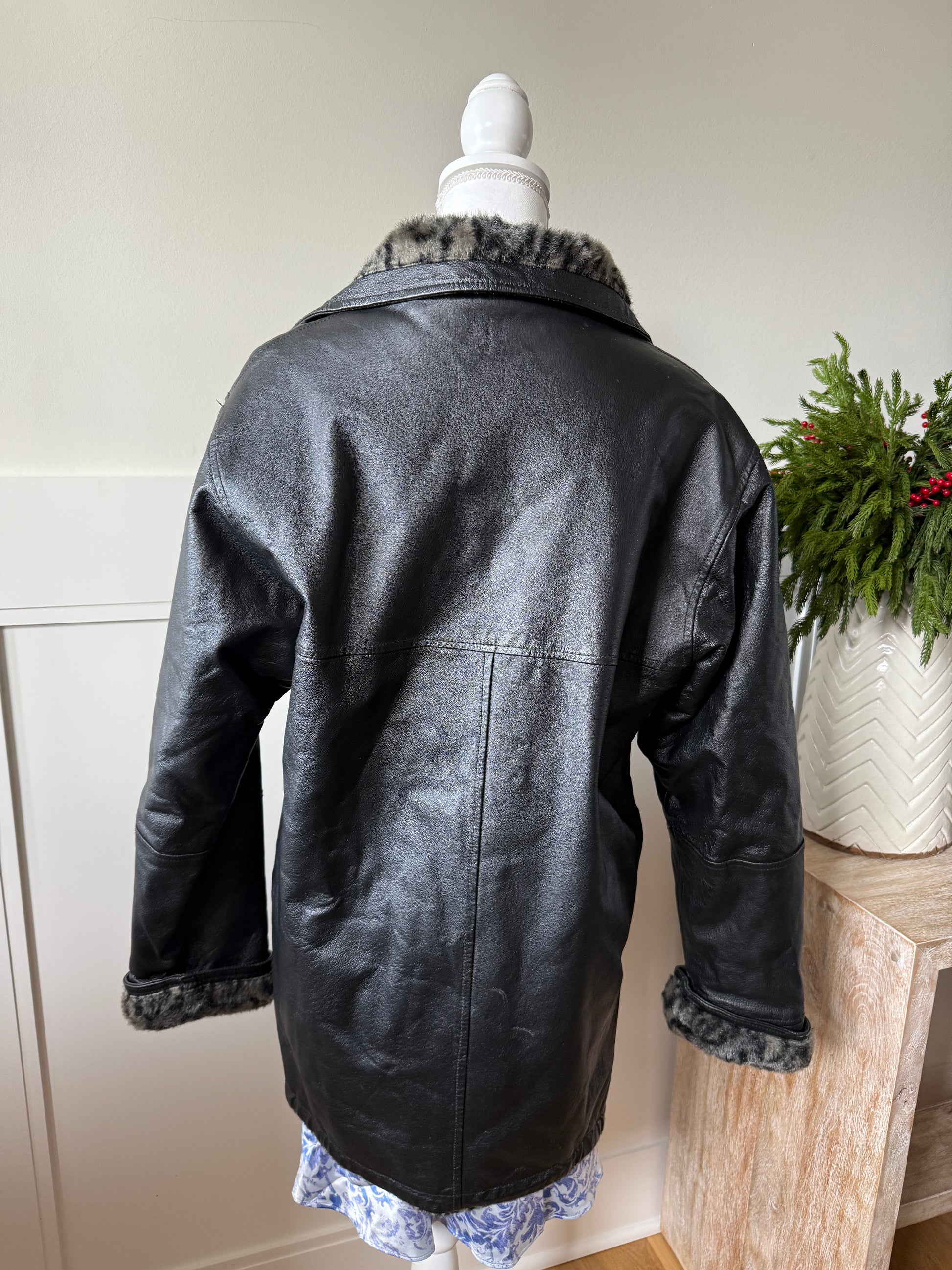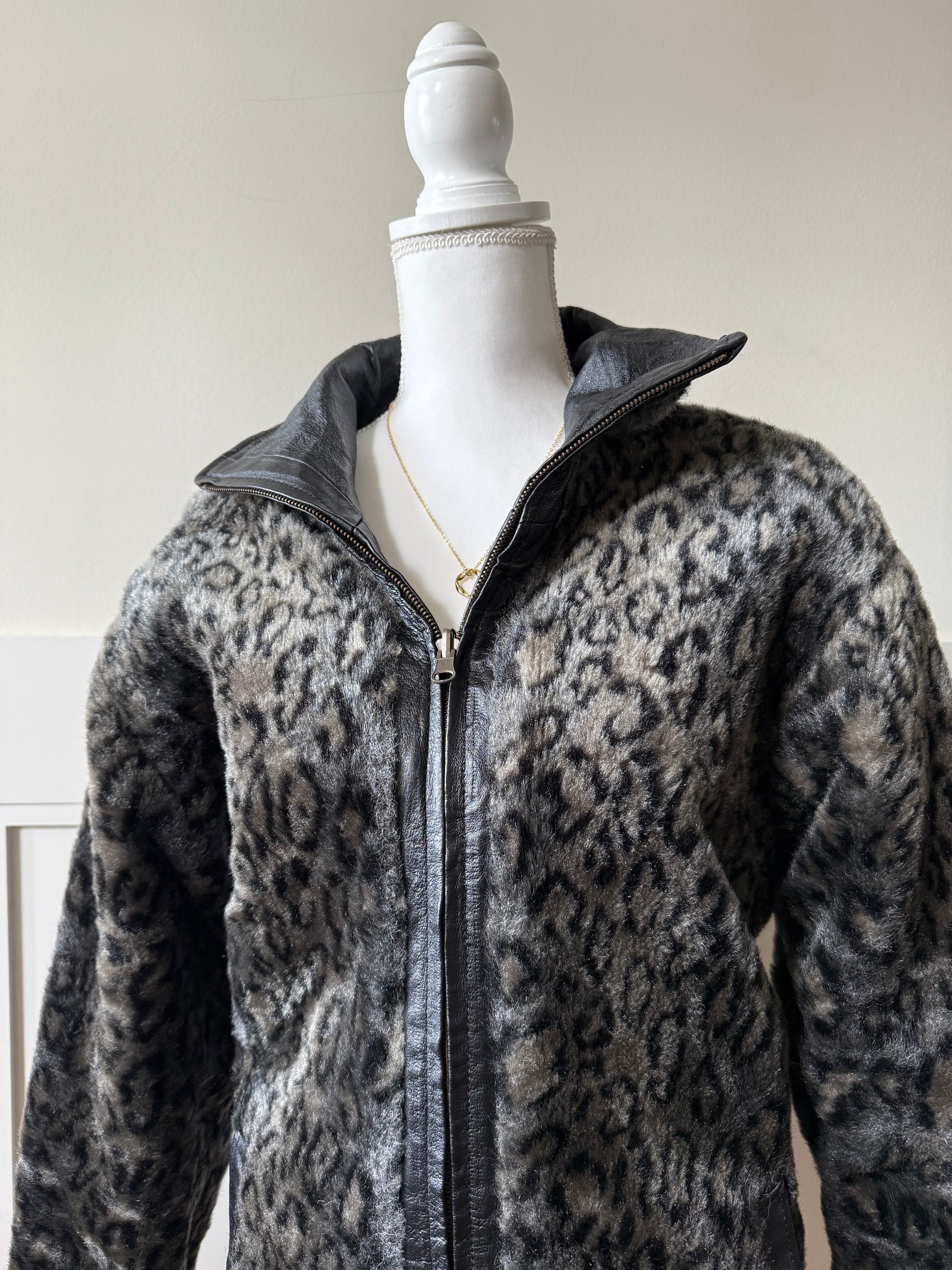 This jacket is so awesome- and you get 2 in 1! Wear the faux leopard fur with leather accents, or the other way around. It has a flattering fit, too! Genuine leather.