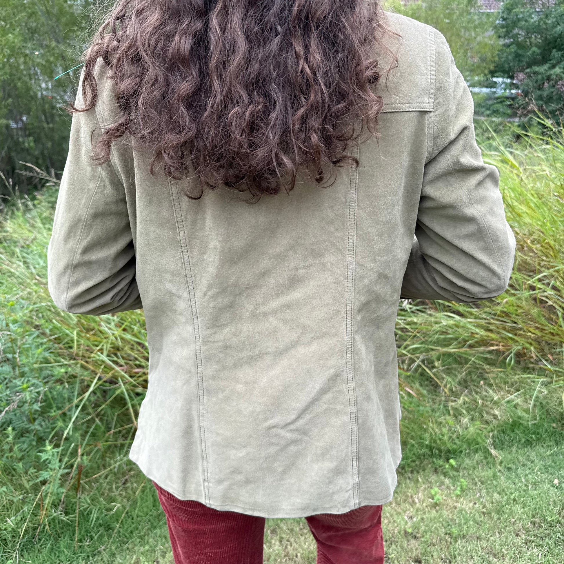 Prettiest sage green suede jacket. This is the most perfect fall jacket! Tagged a women's size 8.