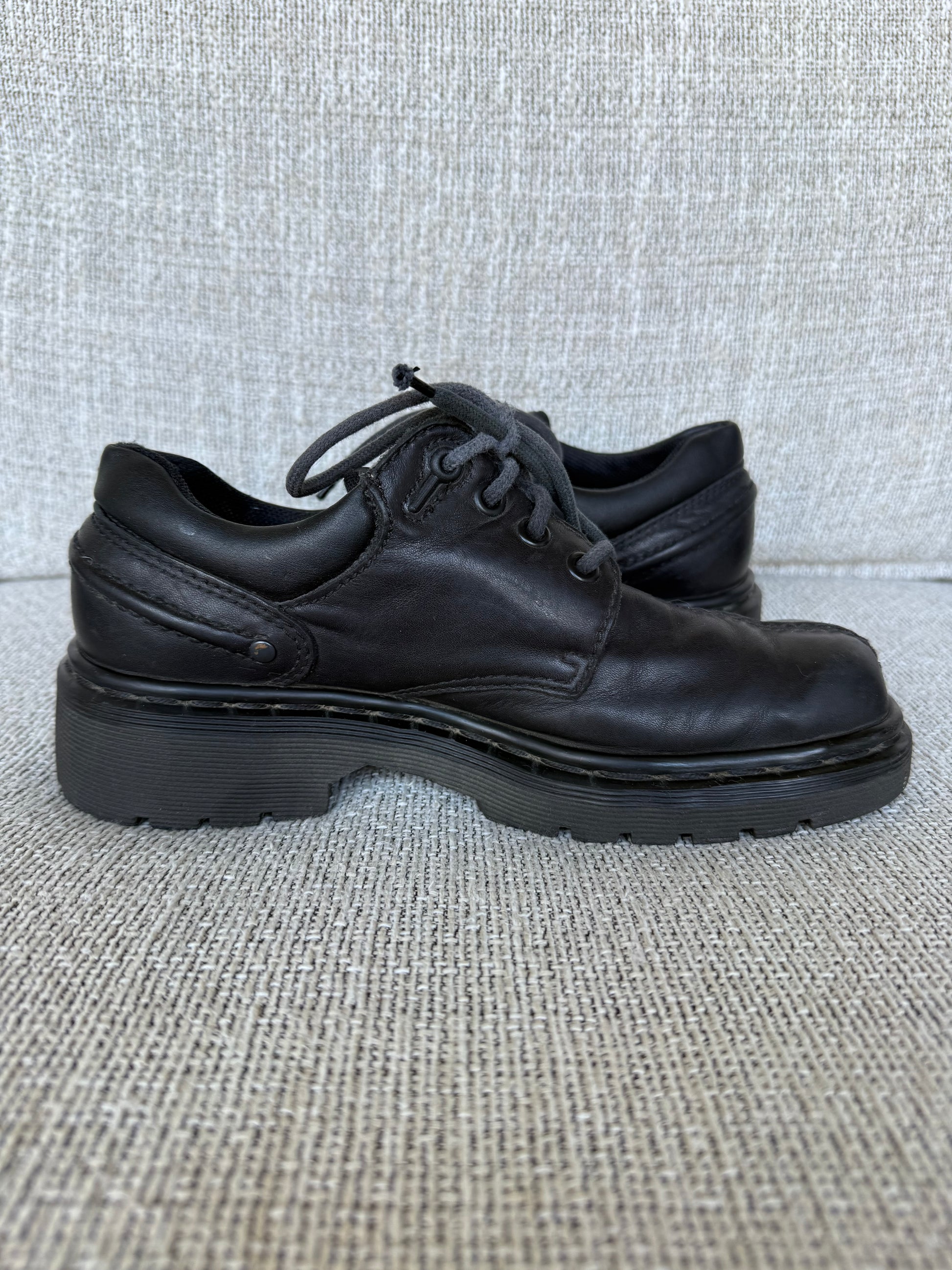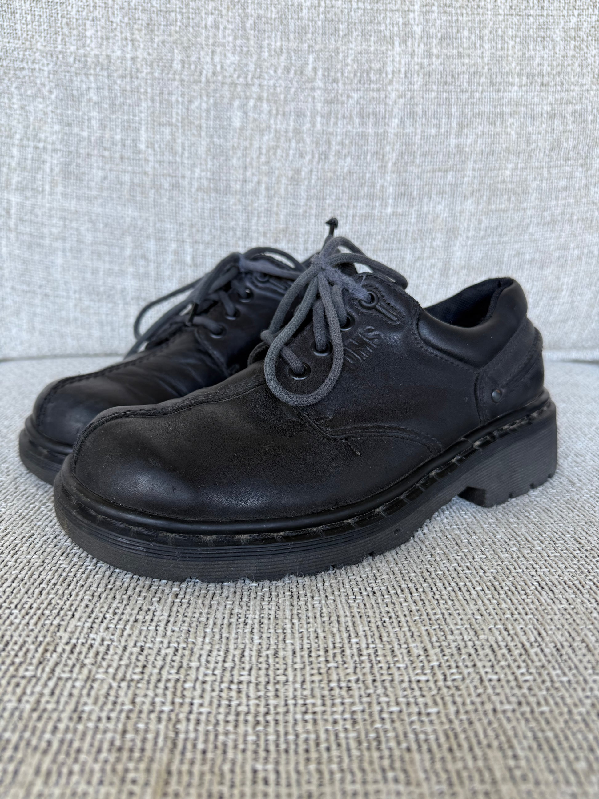 Vintage, made in England oxfords. These are such a cool pair! They're a great chunky black oxford with a front inseam and screws.