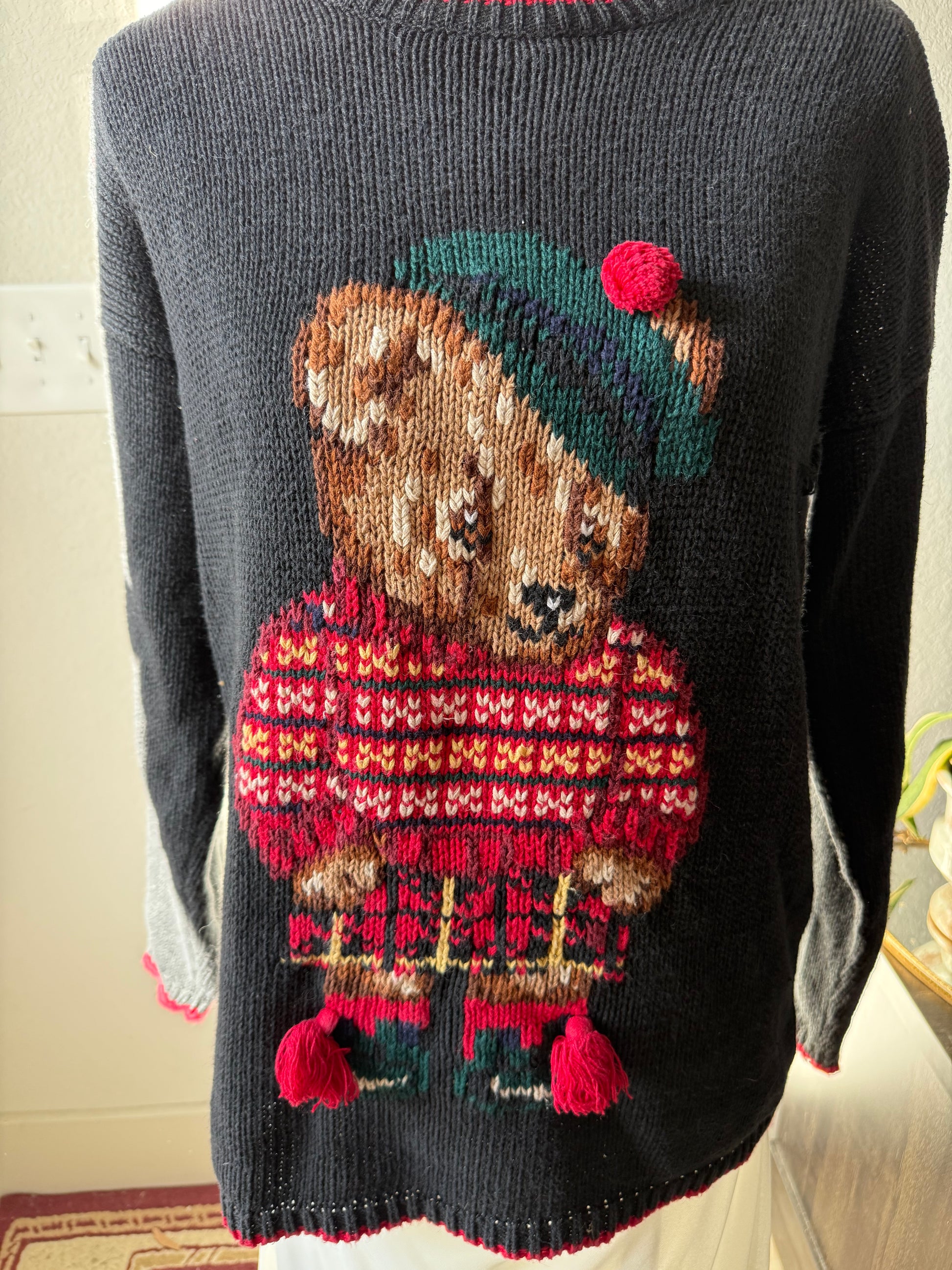 Teddy bear chunky knit sweater from 1993. Great condition, but it has a hole (pictured). Women's L / Men's M.